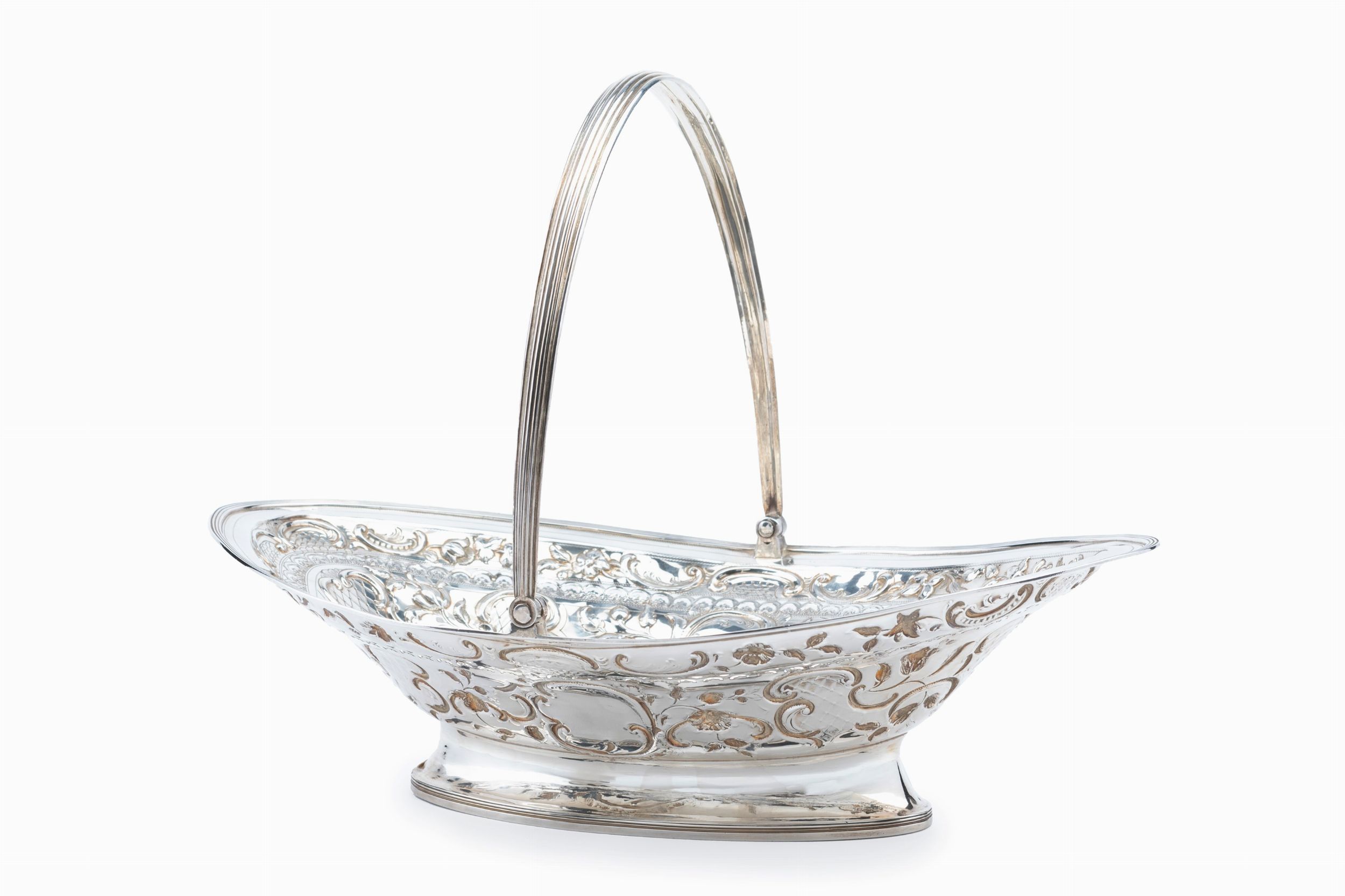Londra, 1797 argentiere HC (Henry Chawner), di forma ovale, riccamente traforato, sbalzato e cesellato, con manico reclinabile, difetti (alcune ammaccature).