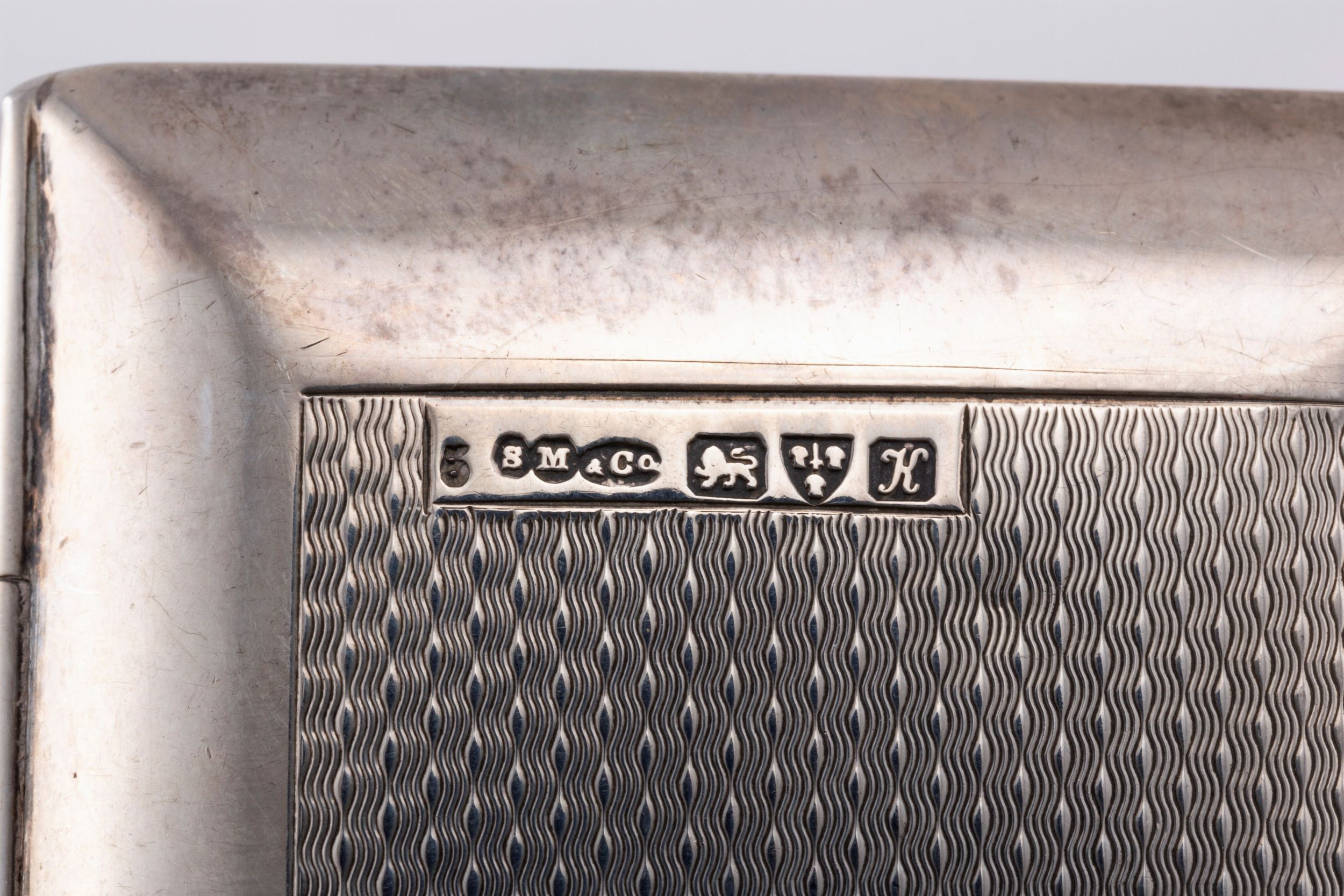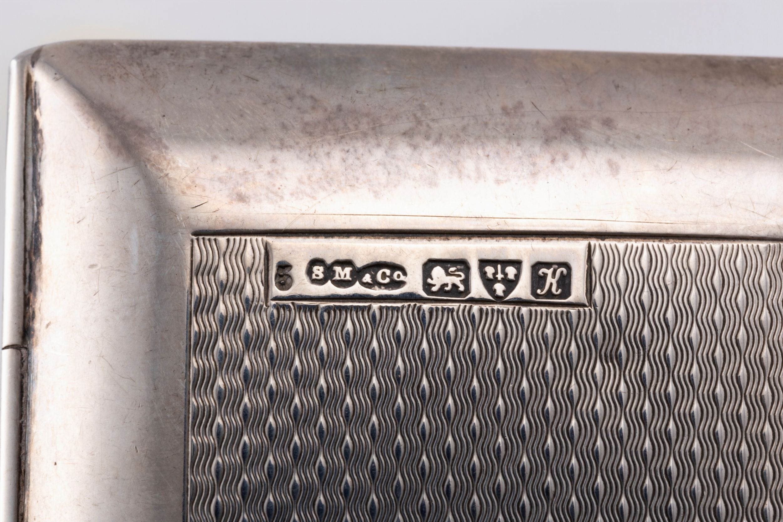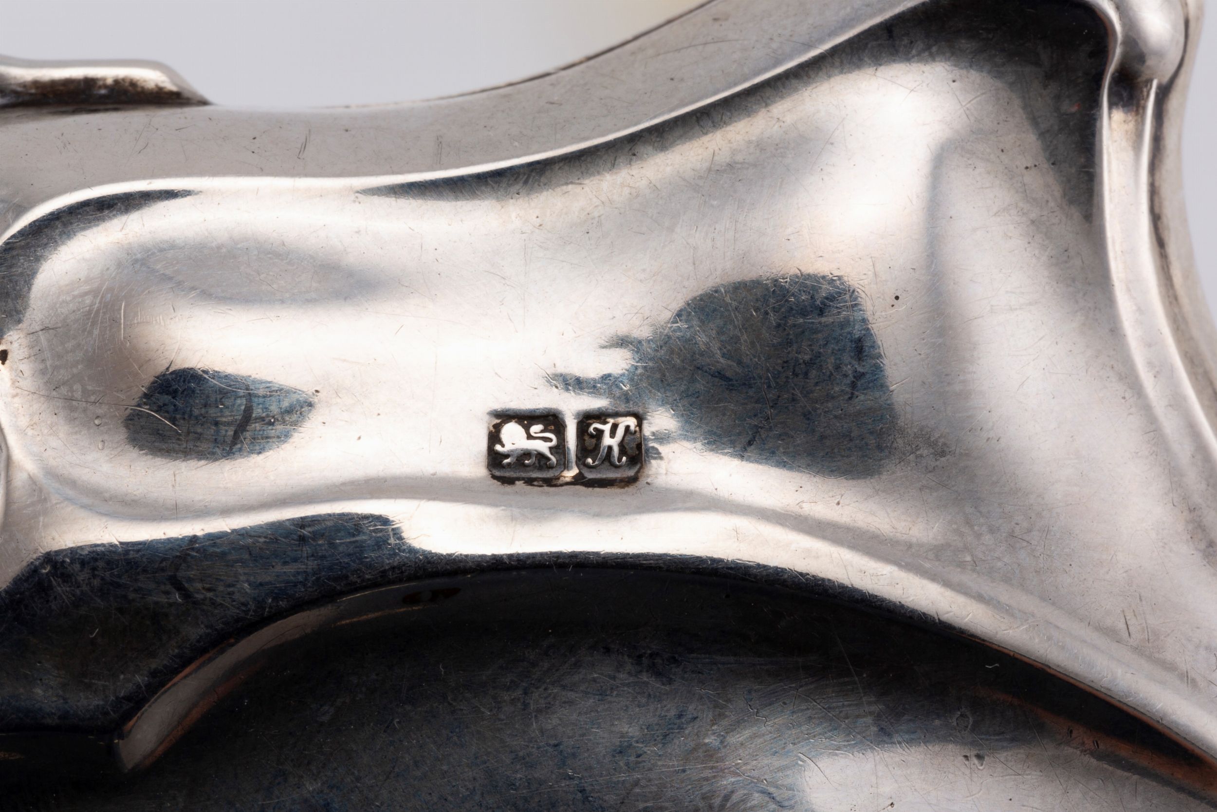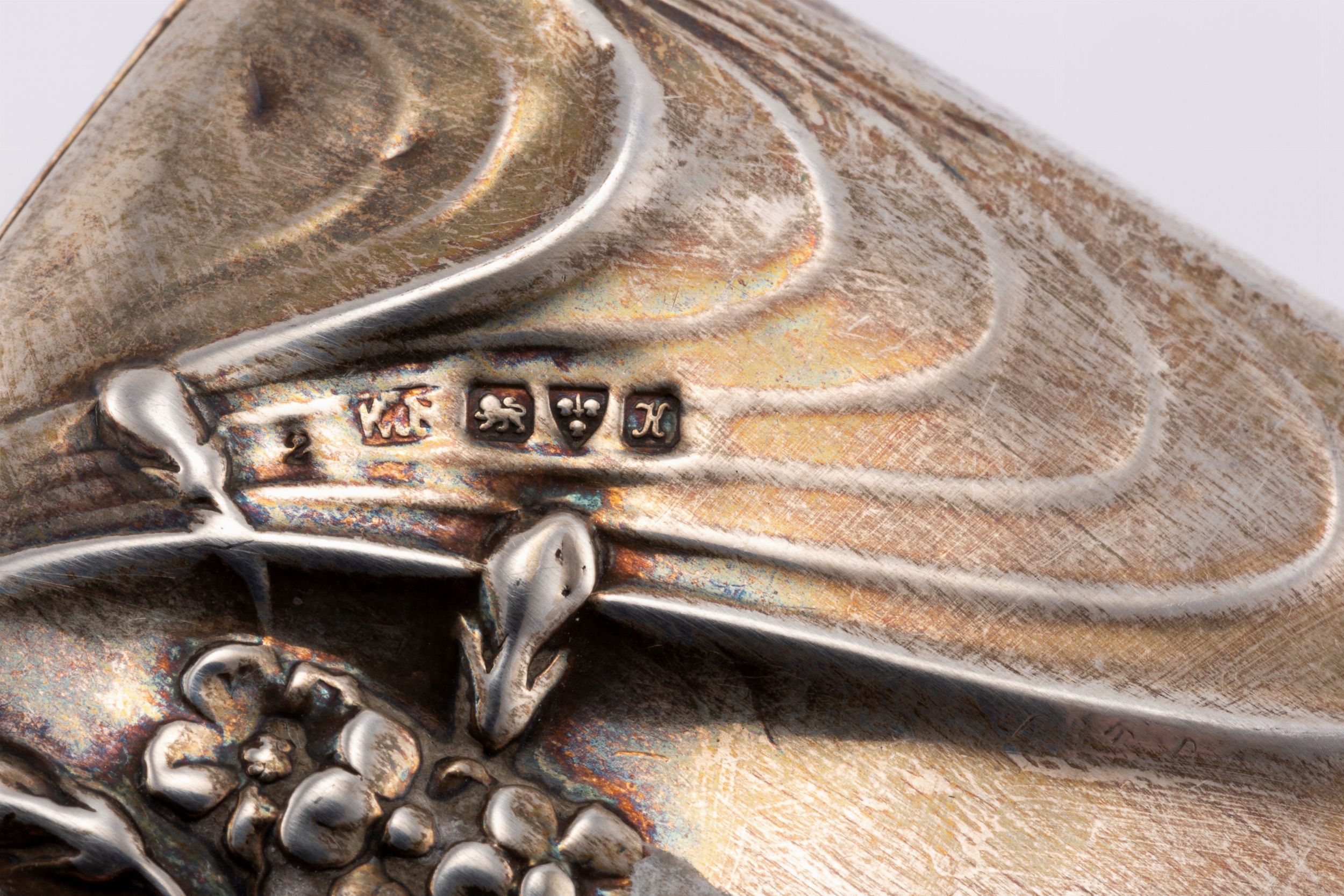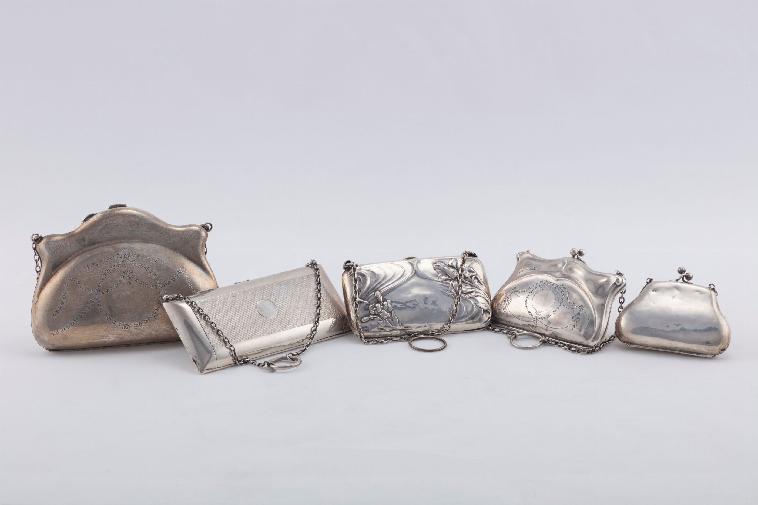 Chester, secolo XX due a forma di borsetta con corpo liscio incisi al centro con ghirlanda e fiocco (l cm 12,00 e 8,50), uno sbalzato con motivi floreali (l cm 9,50), uno rettangolare zigrinato (l cm 12,00), uno a corpo liscio (l cm 7,00), difetti.