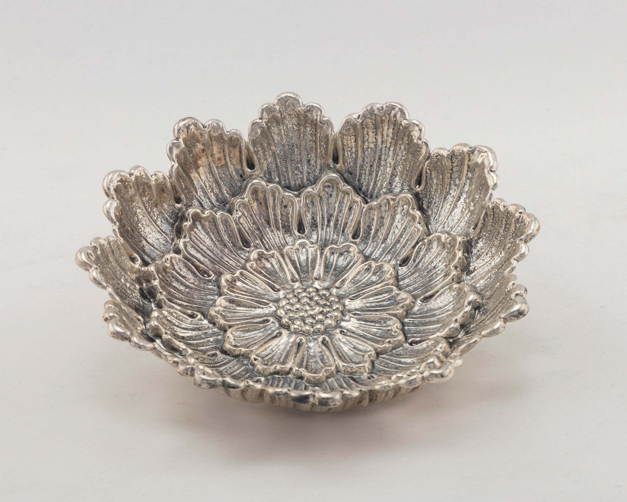 Italia, secolo XX Argentiere Clementi, Bologna per Maison Gianmaria Buccellati,  misura grande, finemente sbalzata a foggia di dalia,  con scatola.