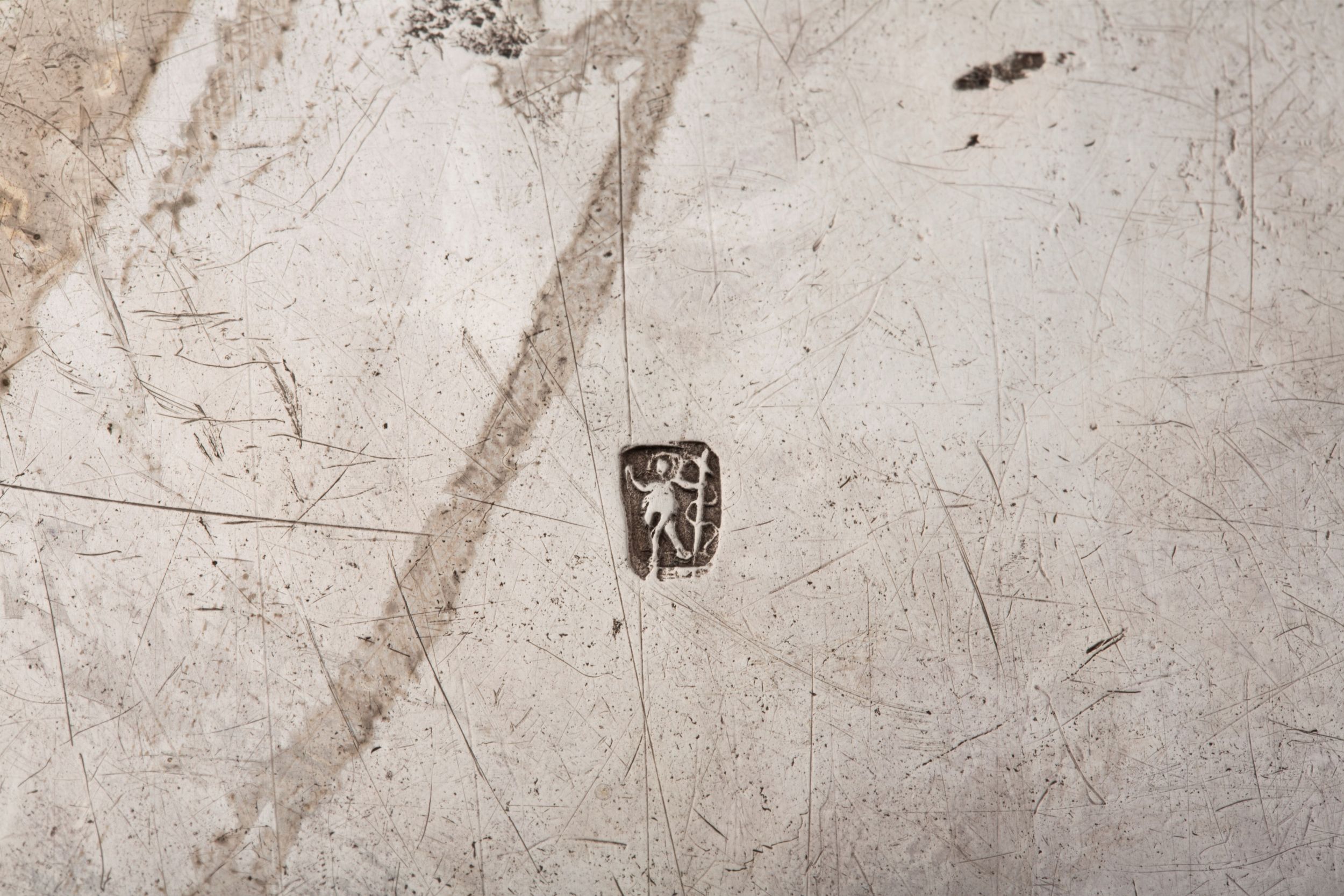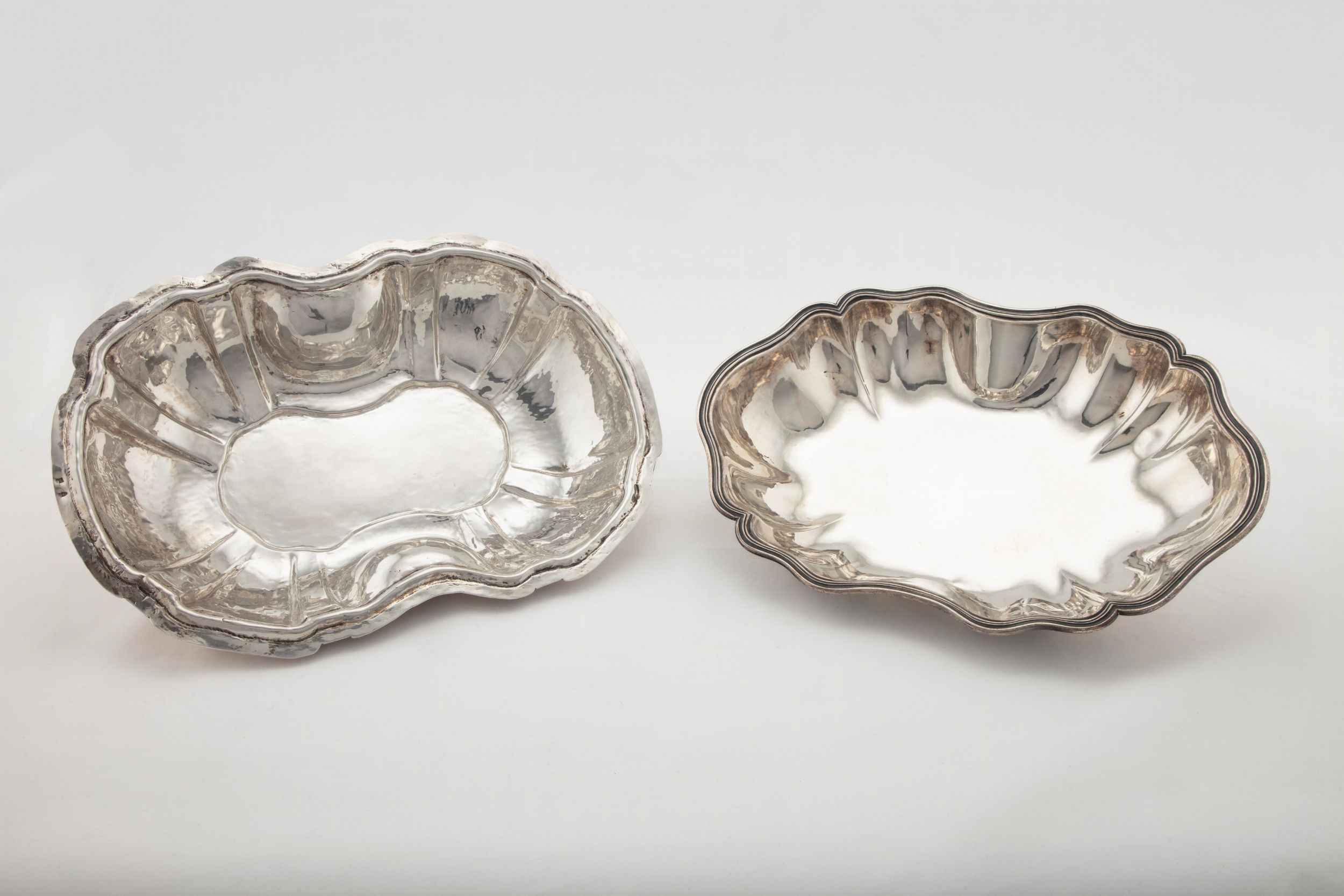Milano, secolo XVIII (?) uno reca punzone di Giovanni Mantelli (?), l'altro punzone con doppia chiave identificato a Milano nella seconda metà del secolo XVIII, di forma sagomata, tesa baccellata, bordo nervato.