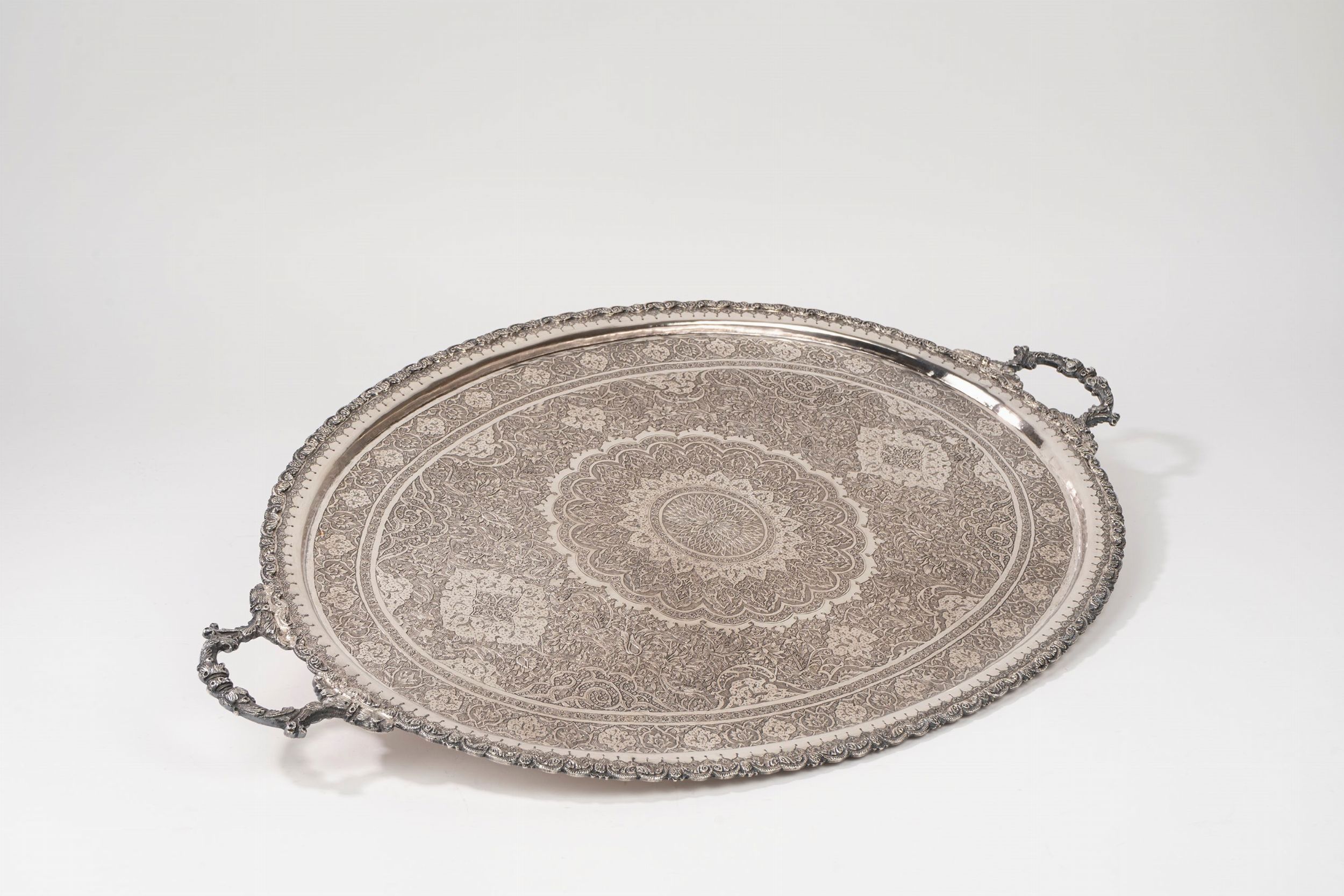 Iran, secolo XX a due manici, interamente inciso a motivi orientali.
