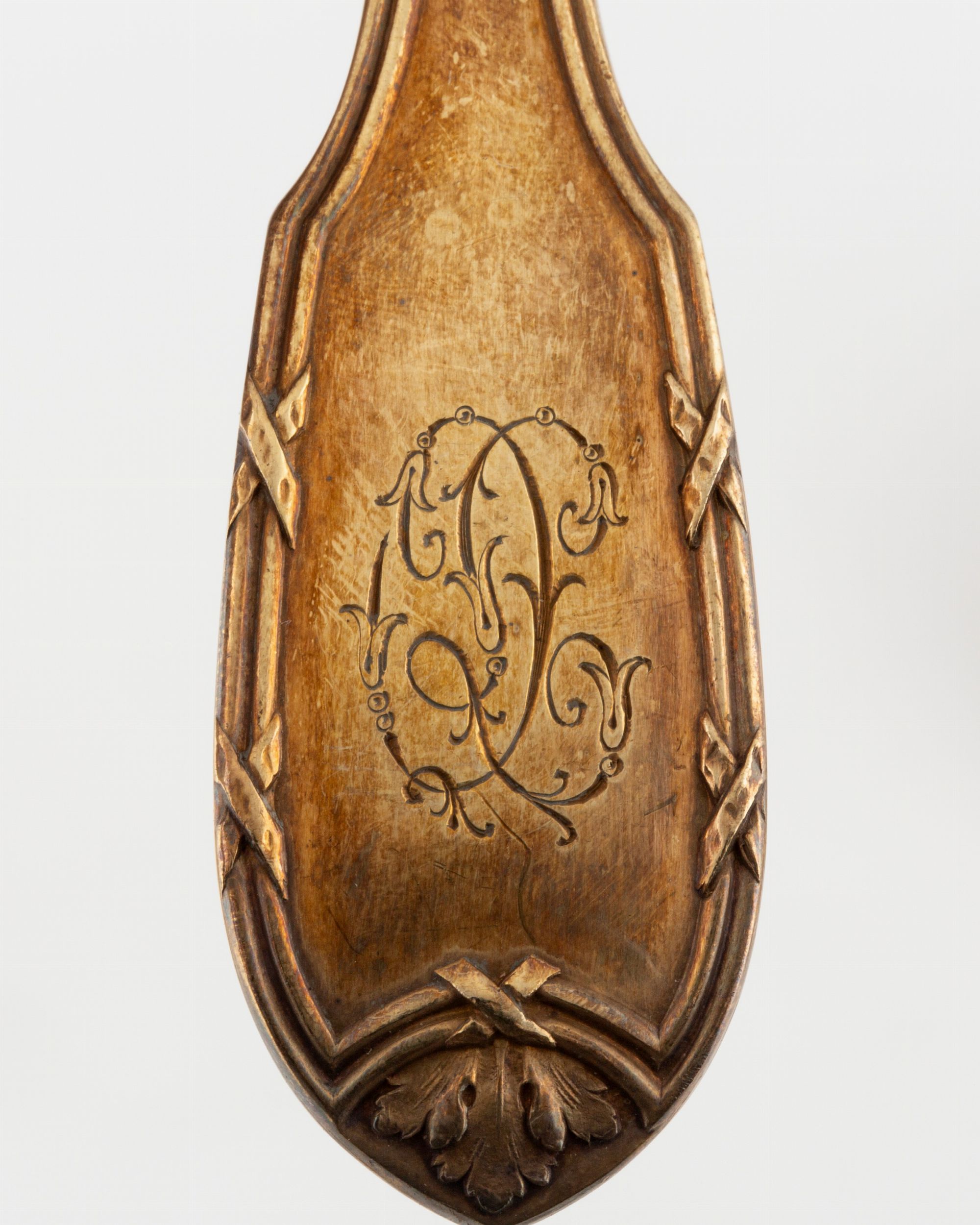 Parigi, secolo XIX Argentieri L. Beguin & L. Lapar Orfèvre, rue de Choise 20 Paris, composto da 248 pezzi: 30 forchette, 60 cucchiai, 30 cucchiaini, 30 palette da gelato, 12 cucchiai da dessert, 30 coltelli con lama in argento, 30 coltelli con lama in acciaio, 20 serviti, 2 forbici da uva e 4 pinze.