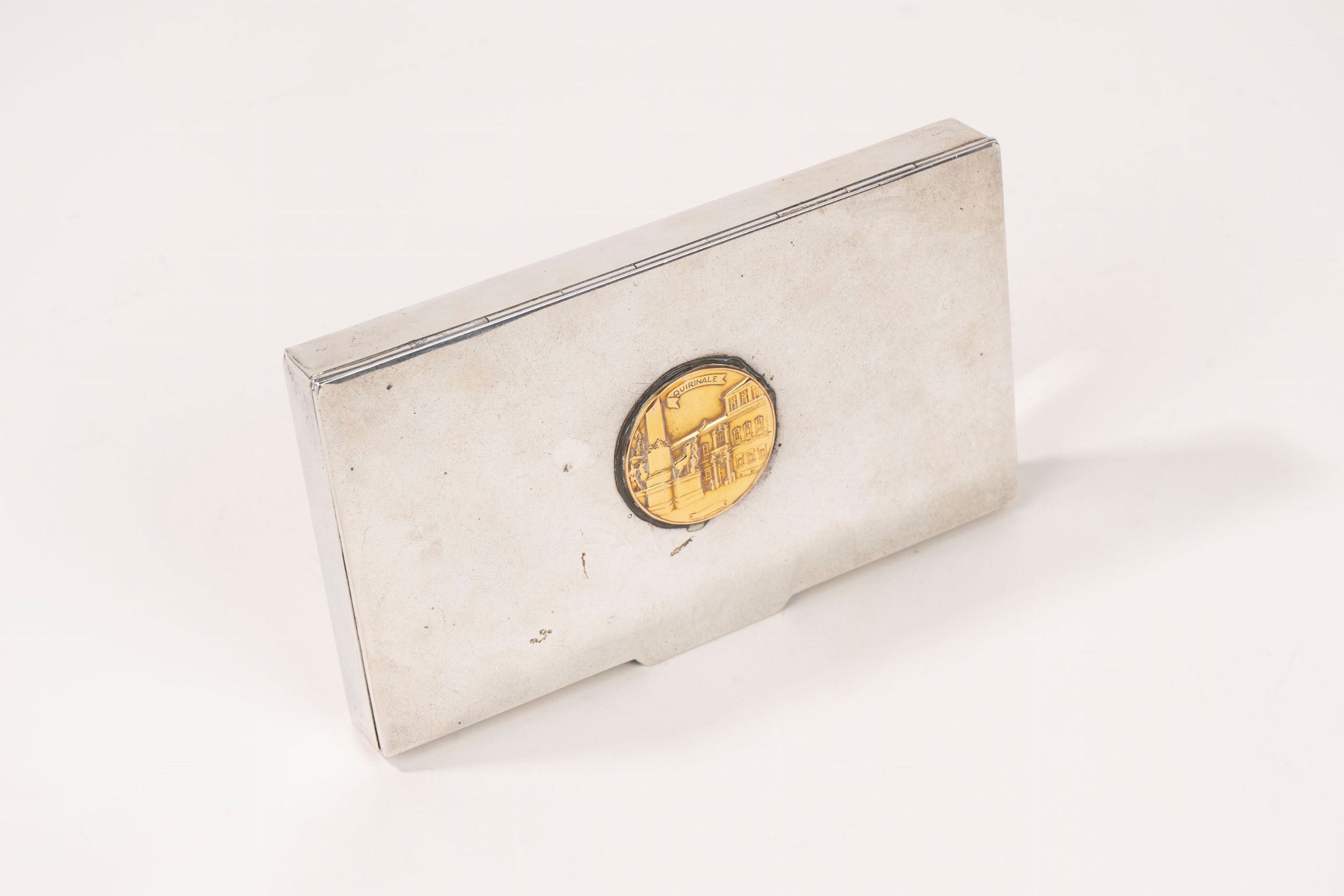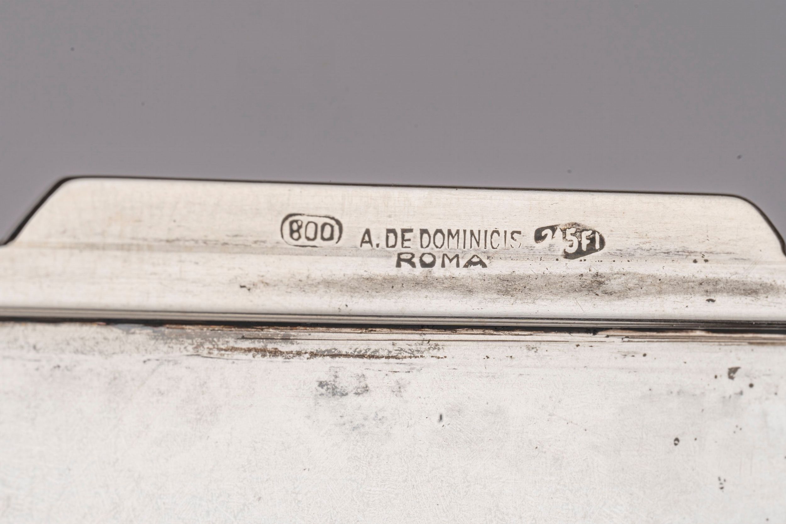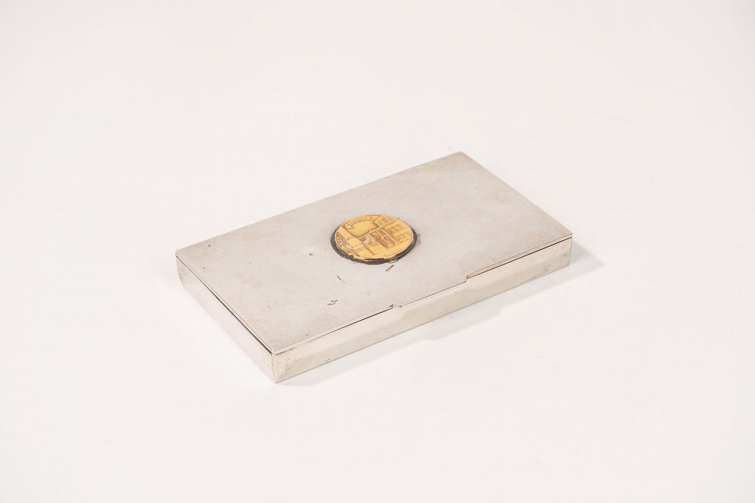 Italia, secolo XX di forma rettangolare, sul coperchio moneta raffigurante il Quirinale, all'interno firma incisa del 5° Presidente Italiano Giuseppe Saragat (1964-1971), rivenditore A. De Dominicis Roma.