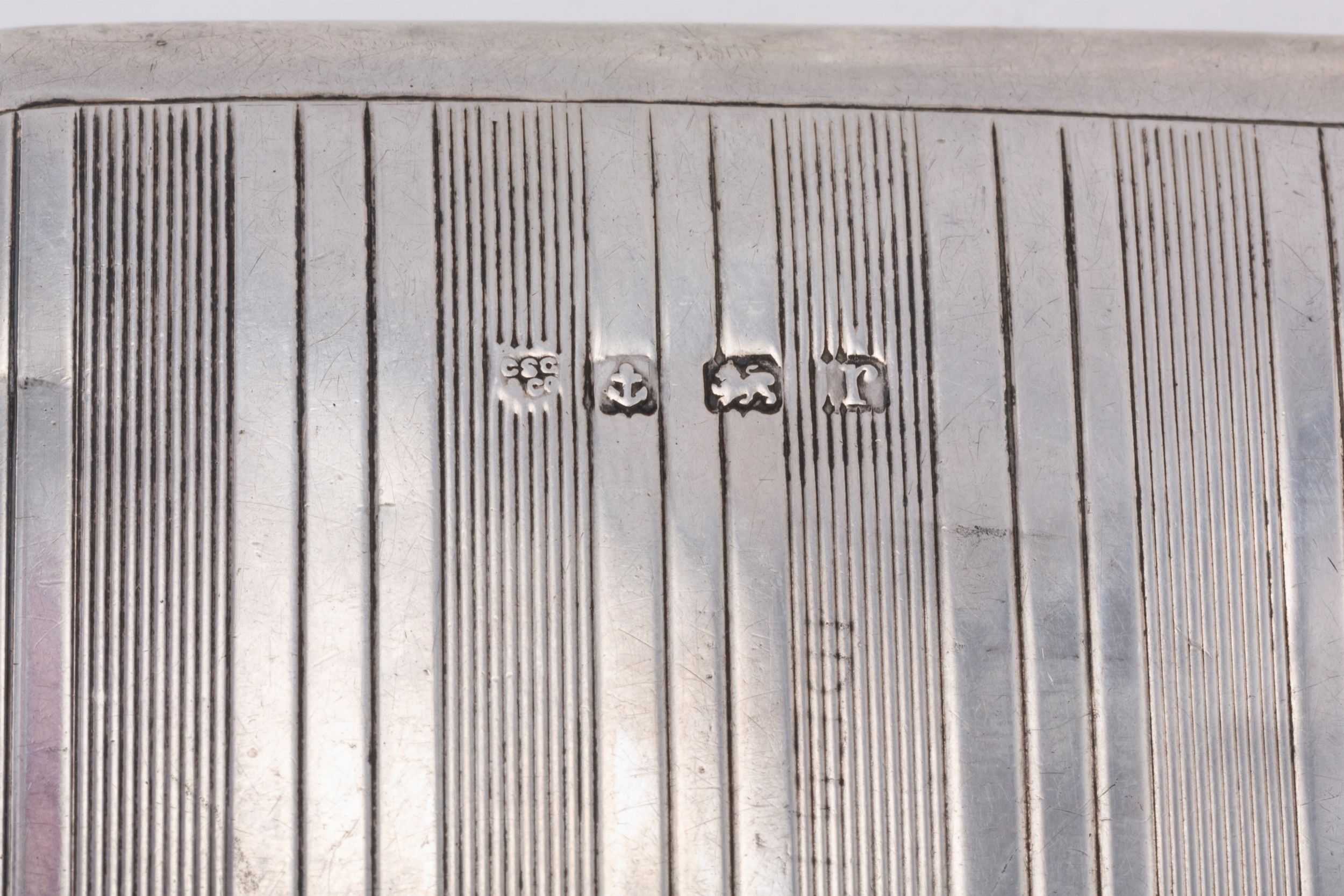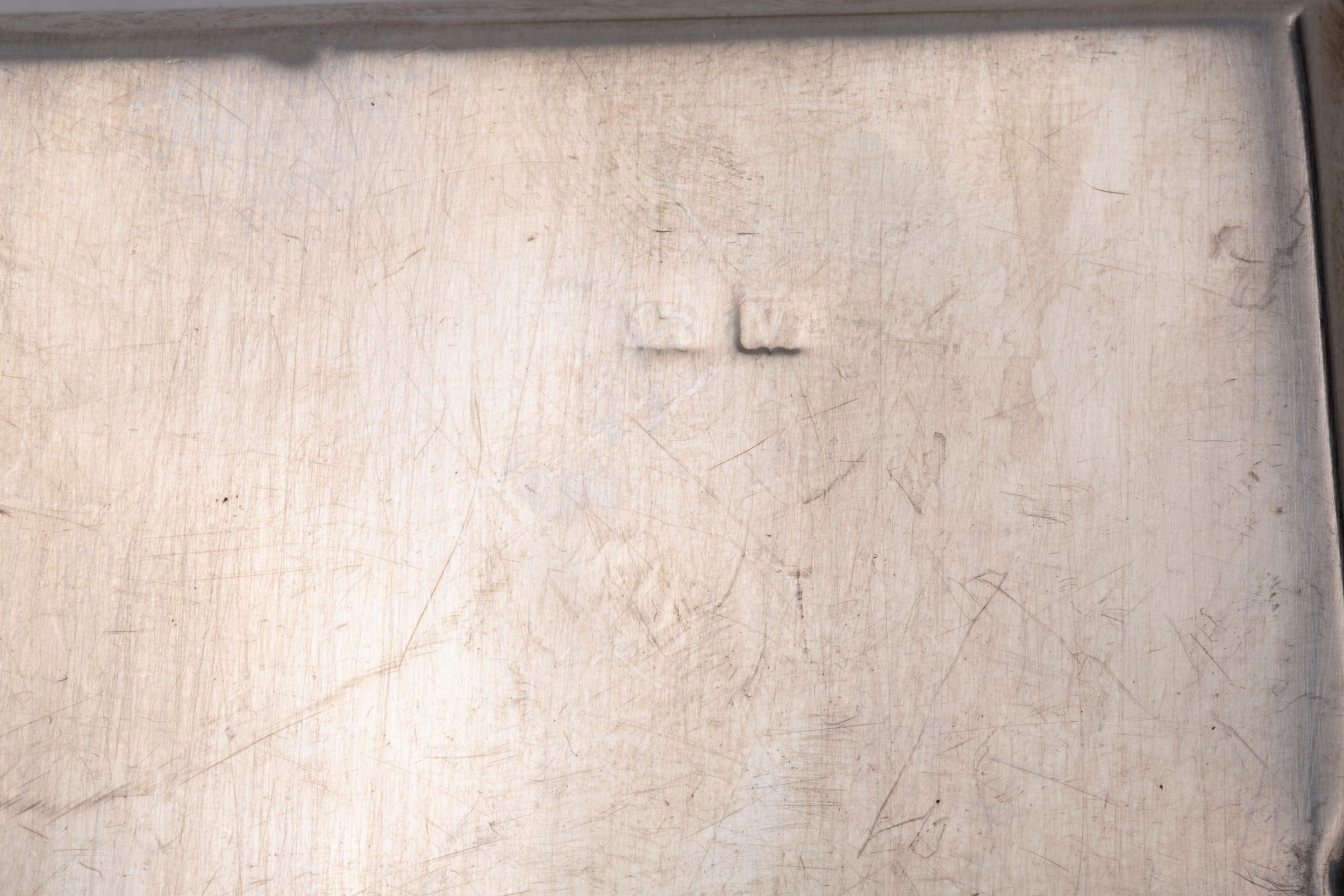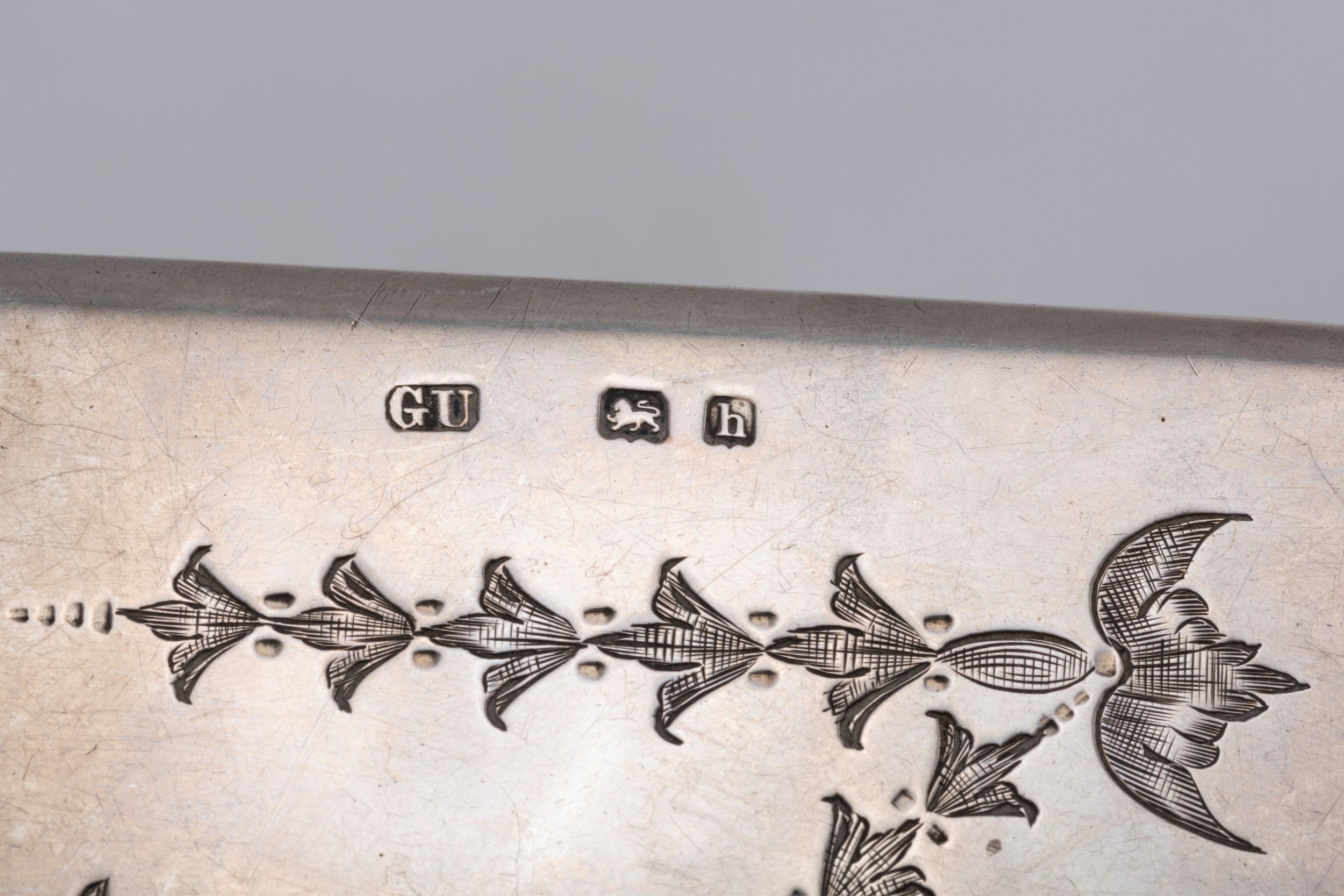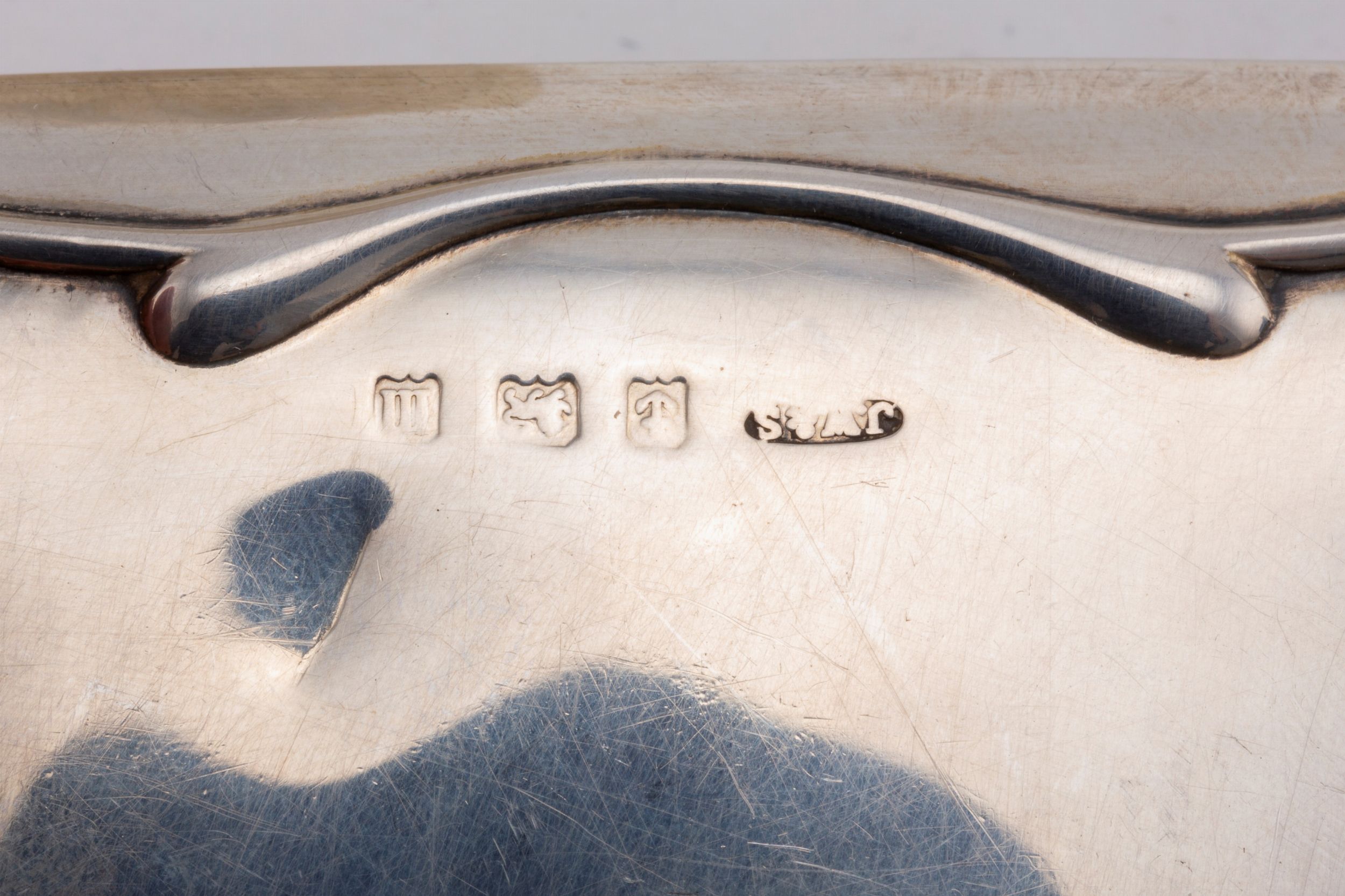 Birmingham, secolo XX di forma rettangolare, uno inciso a decori floreali e nastri (l cm 10,00), uno zigrinato a fasce (l cm 10,50), uno sbalzato a cornice e centrato da monogramma (l cm 10), uno decorato con fiori e stemma (l cm 9,50), difetti.