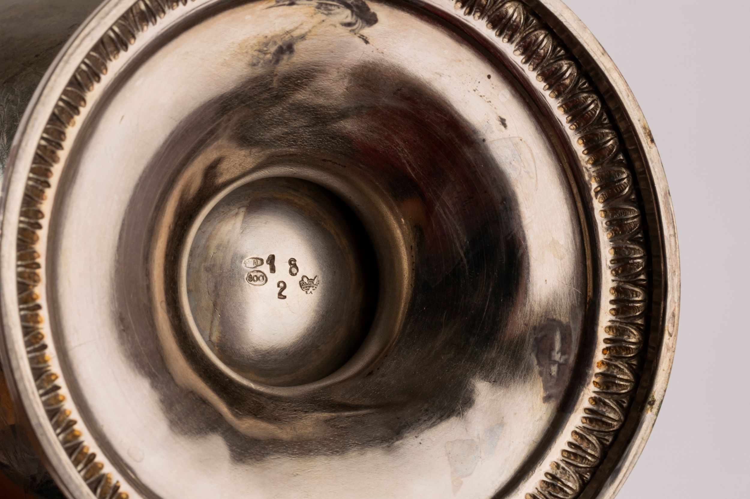 Italia, secolo XX composto da zuccheriera, lattiera, caffettiera e teiera in stile Impero, accompagnato da vassoio a due manici (di manifattura differente).