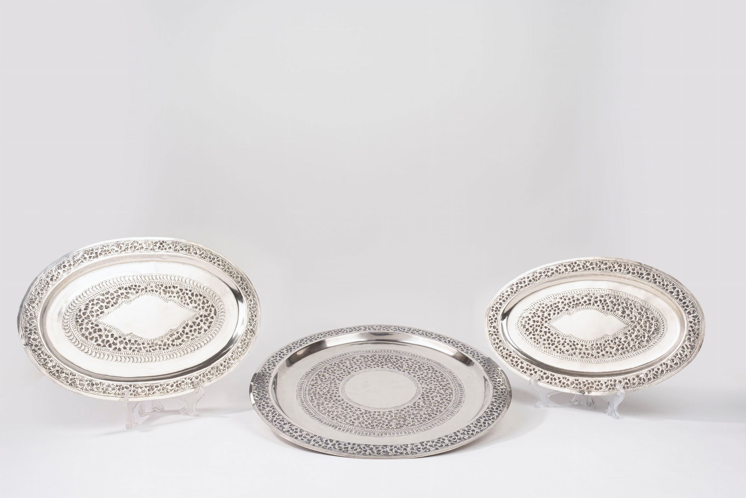 Italia, secolo XX uno di forma rotonda e due ovali, decorati a motivi fogliacei.