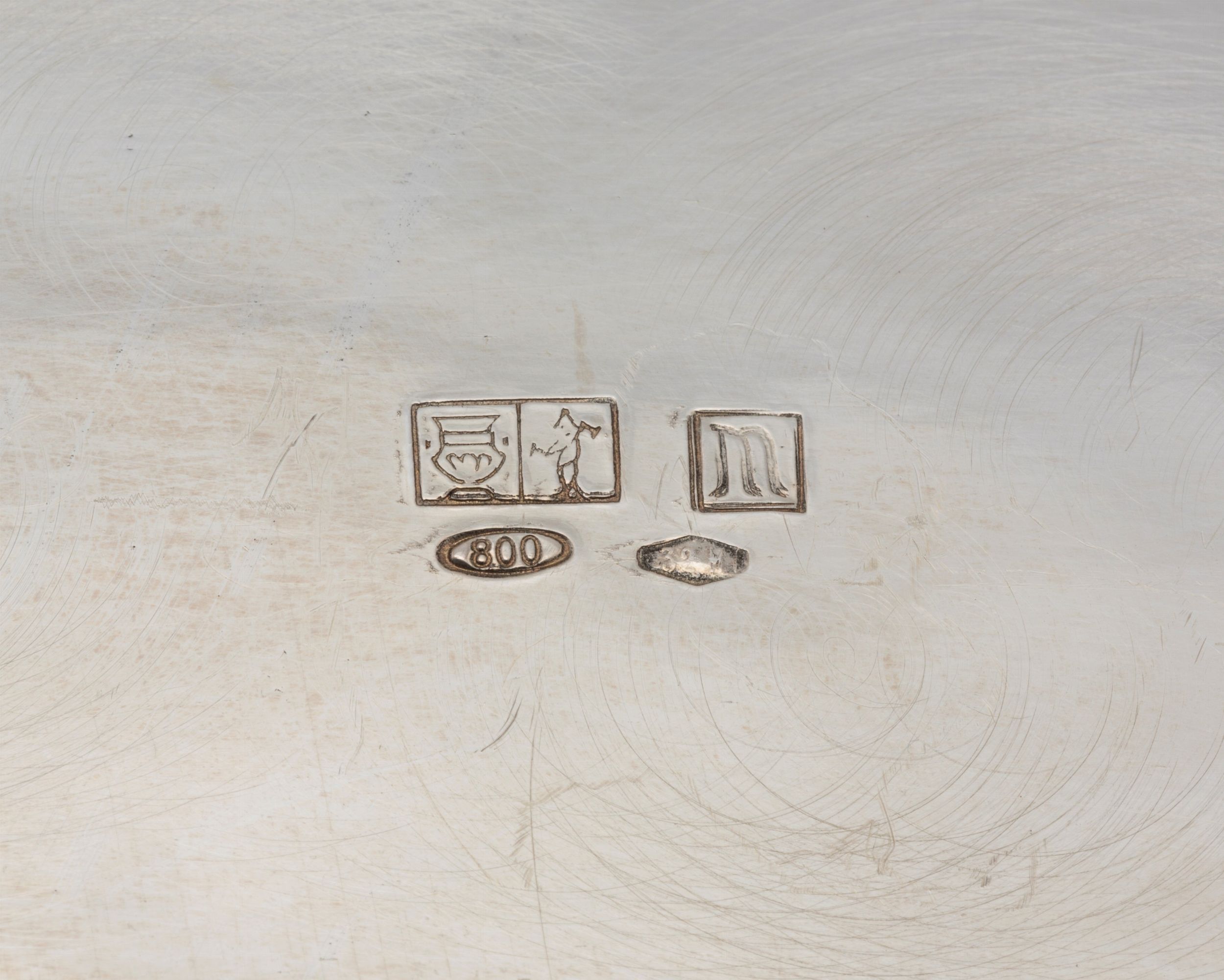 Italia, secolo XX il vassoio ovale (l cm 48,00 x 36,00) , la ciotola sbalzata a decoro floreale (l cm 22,00 x 17,00).