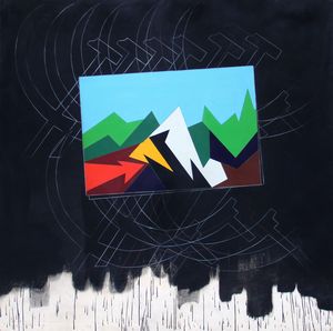 tecnica mista su tela, cm 200x194 1974 - 1980 Firma, data, titolo, dimensioni 'Franco Angeli, 1980, Dagli Appennini [..]