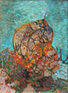 tecnica mista su tela, cm 24x23 2012 Cartiglio con firma dell'artista e timbro di Studio d'Arte H:ORARTE, Lissone [..]