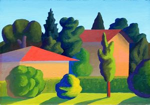 olio su cartone, cm 35,5x50,5 1995 Titolo, firma 'Versila, Salvo'; timbro della Galleria Pace, Milano (al retr [..]