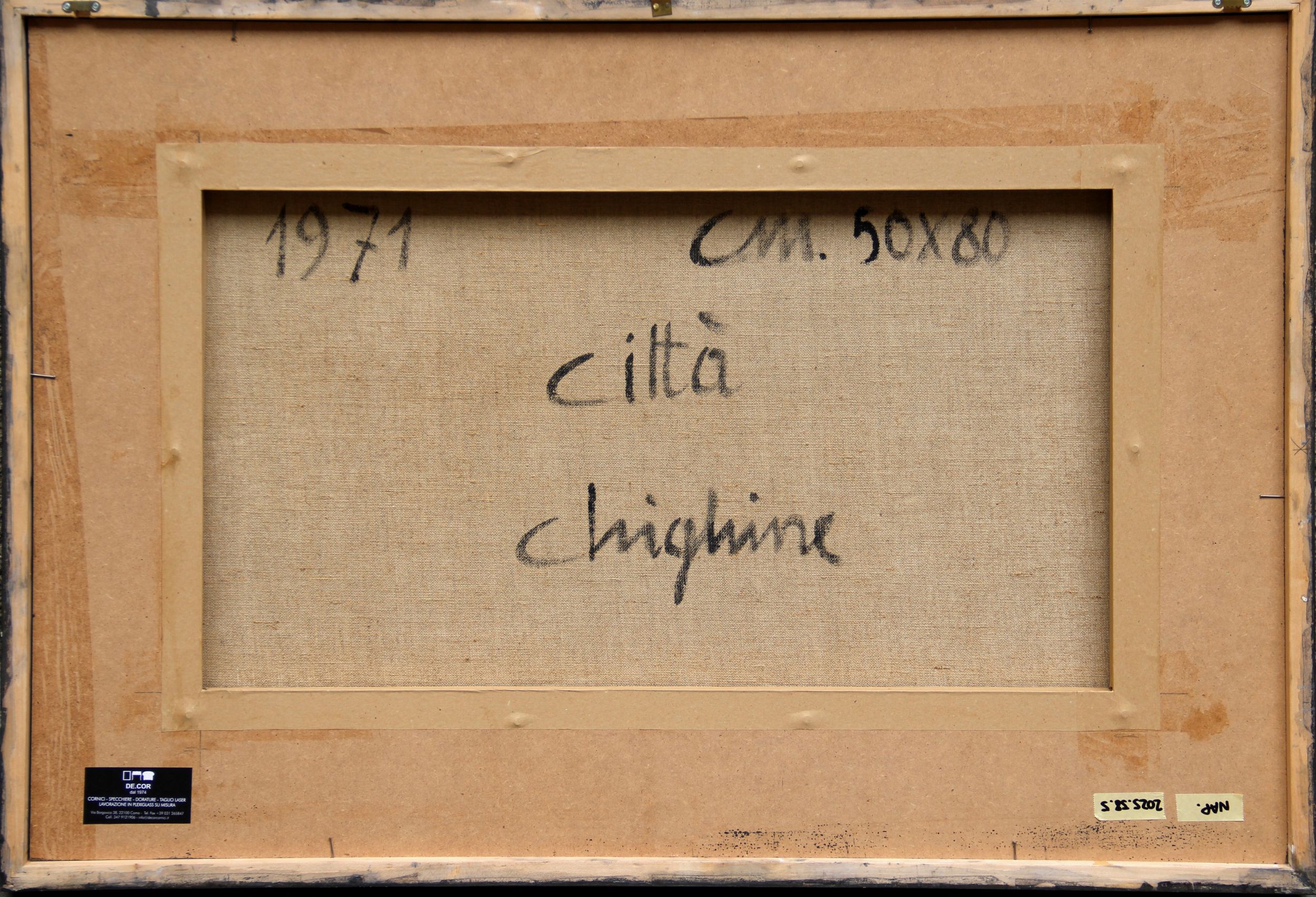 1971 Firma, data 'Chighine, 1971' (in basso a destra) Data, dimensioni, titolo, firma '1971, cm 50x80, Città, Chighine' (al retro)