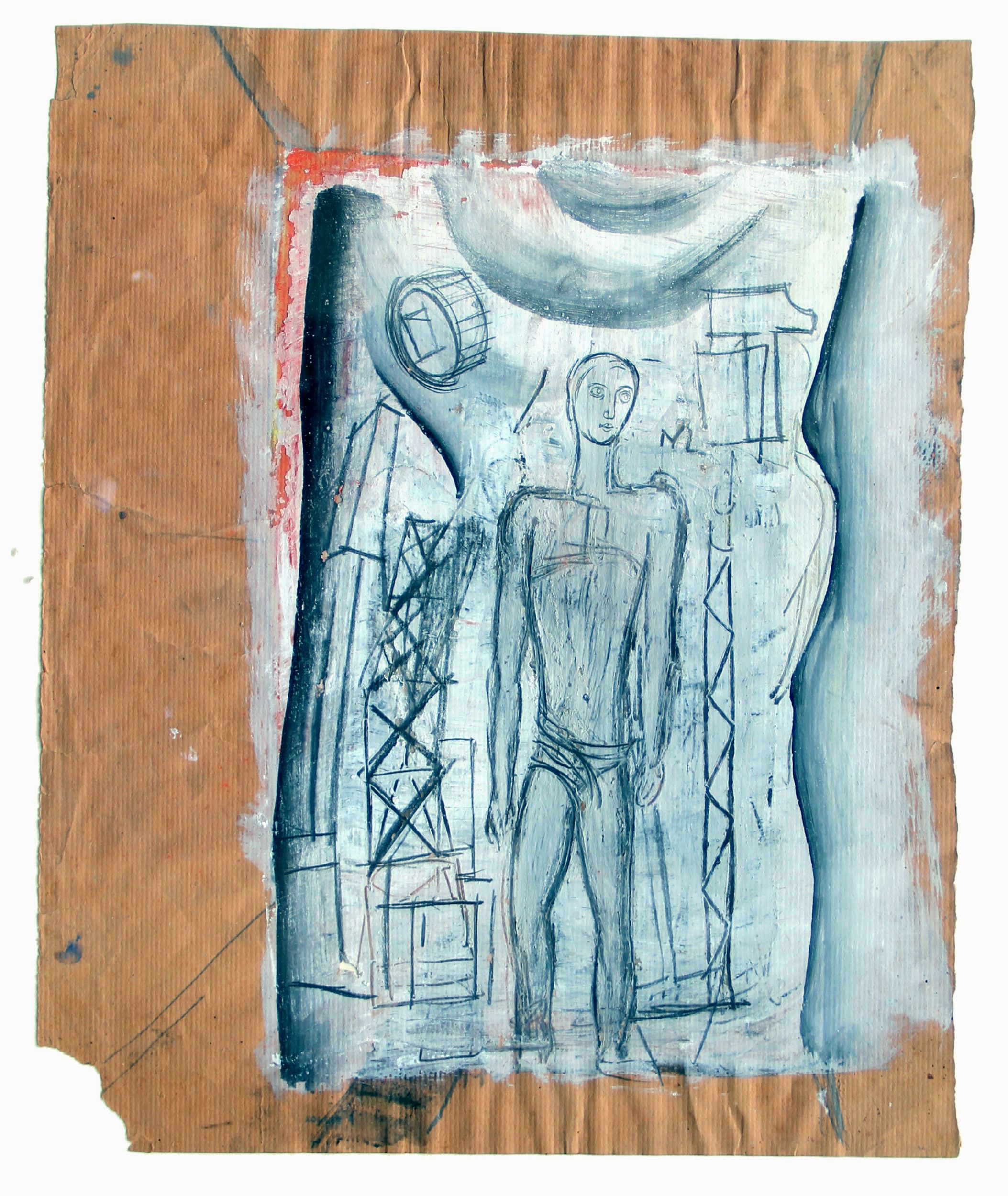 tempera, matita e matita grassa su carta da pacco marrone, cm 44,7x37