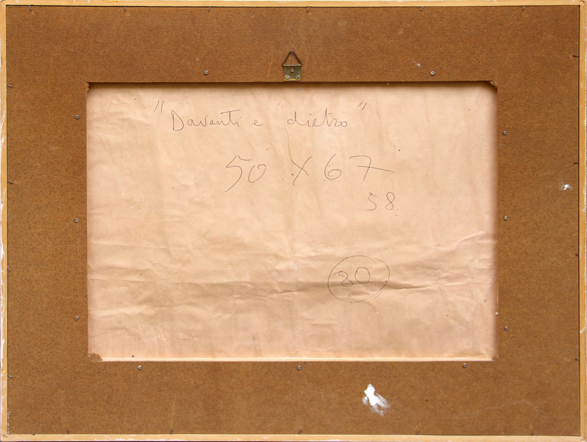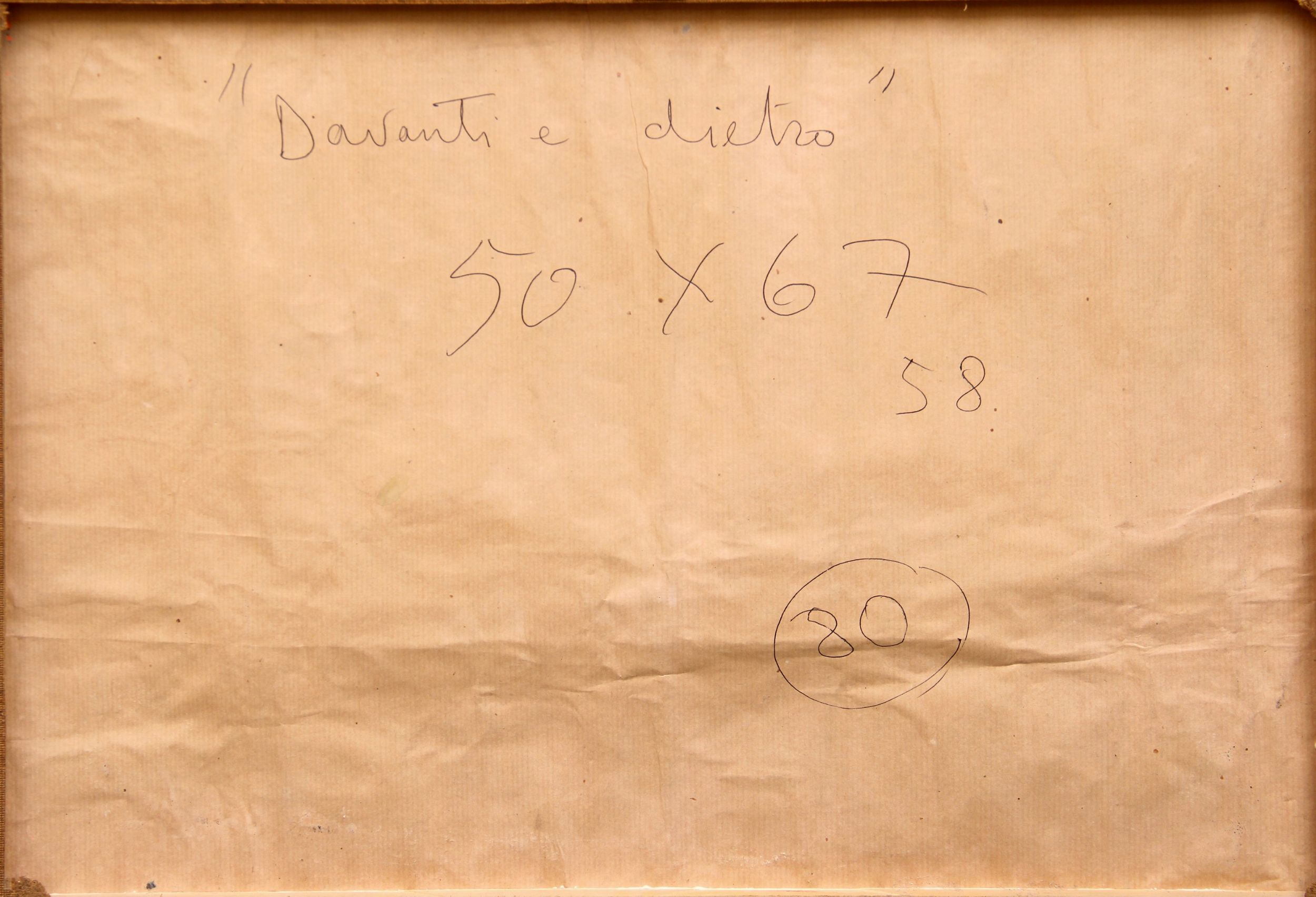 1958 Firma 'Rotella' (in basso a destra) Titolo, dimensioni, firma 'Davanti e dietro, 50x67, 58' (al retro)