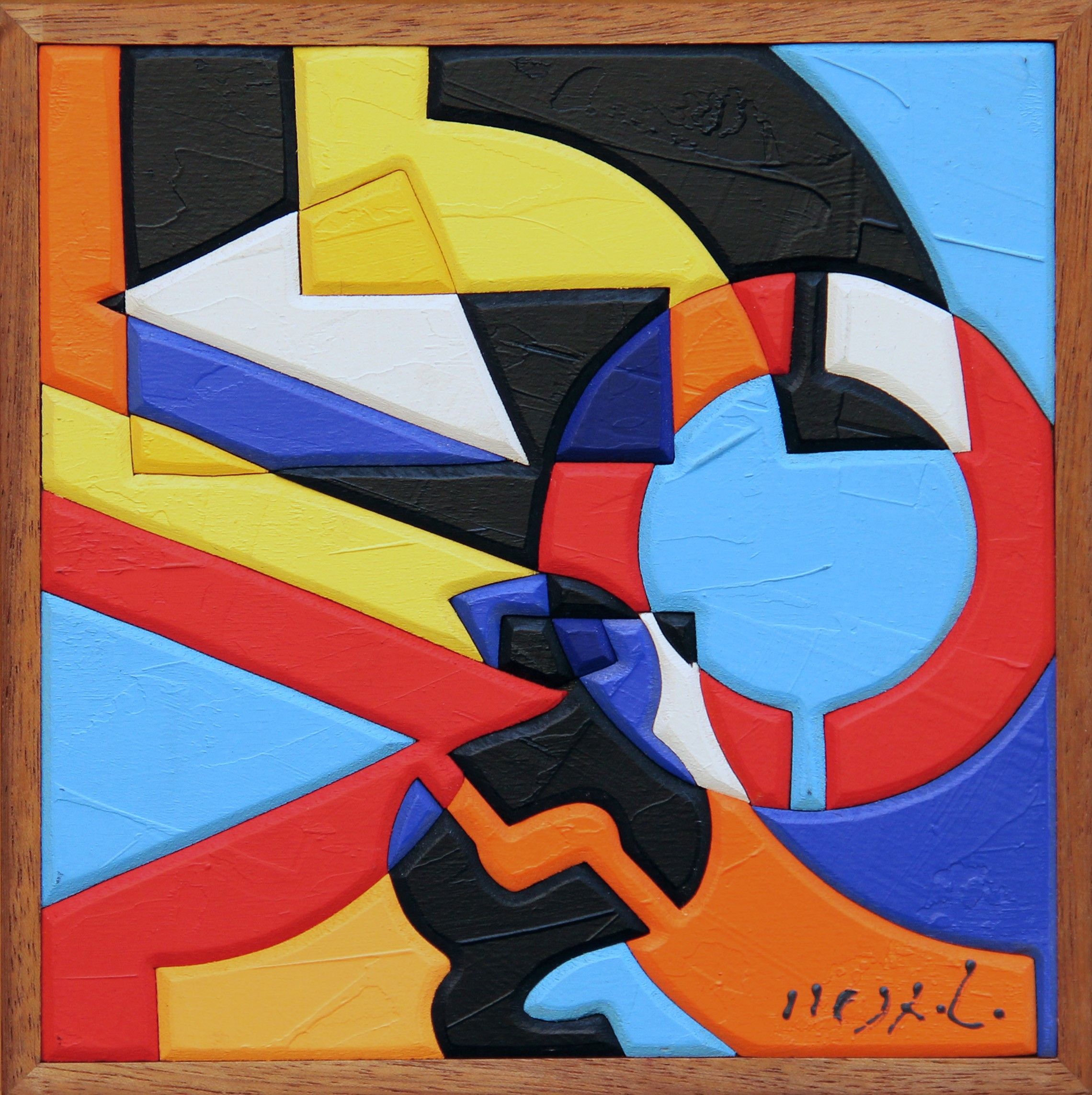acrilico su legno intarsiato, cm 20x20