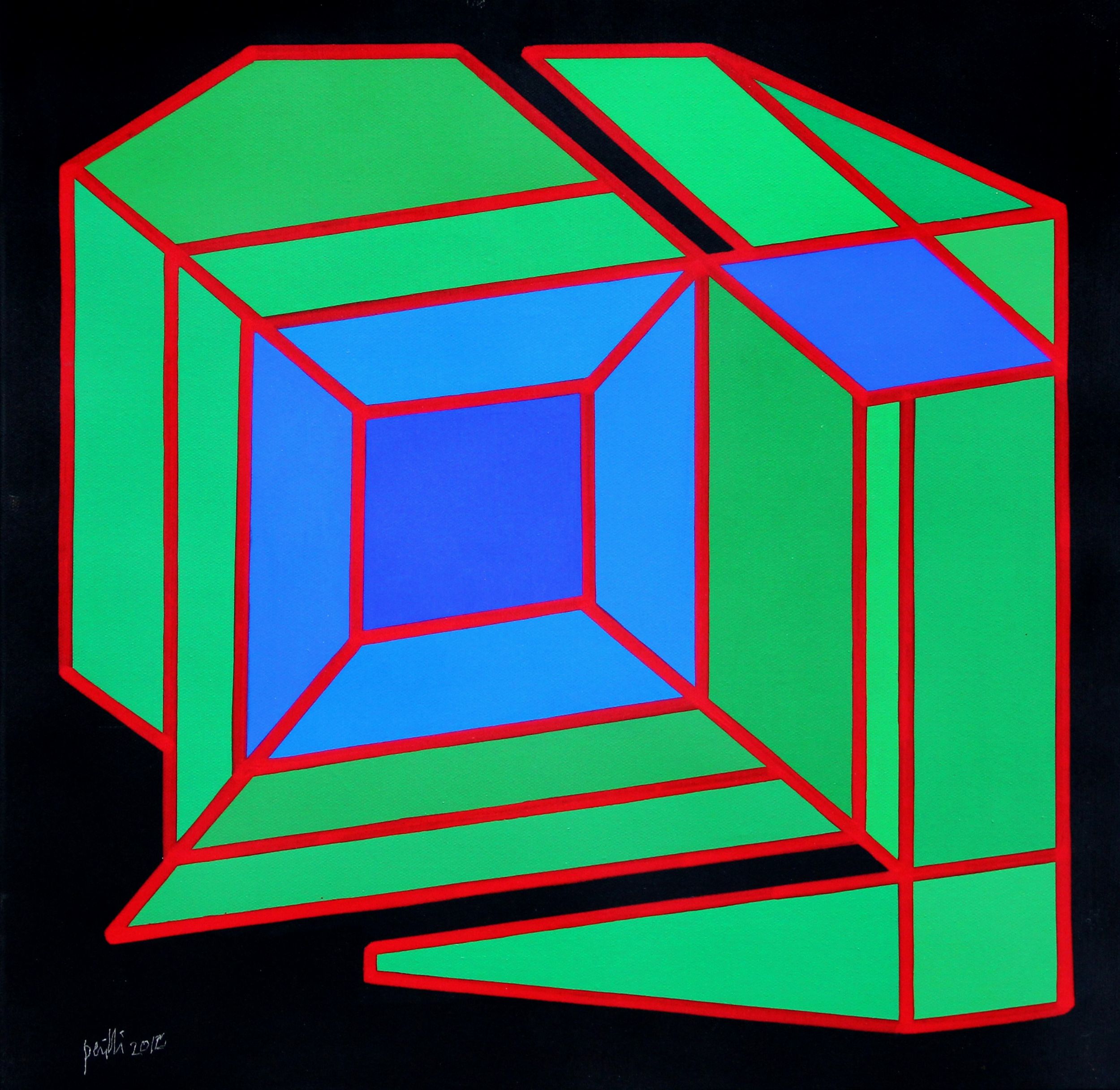 2012 Firma, data 'Perilli, 2012' (in basso a sinistra) Firma, data, titolo, dimensioni 'Achille Perilli, 2012, Il luogo antico, cm 50x50'; etichetta di Casati Arte Contemporanea, Muggiò (al retro)