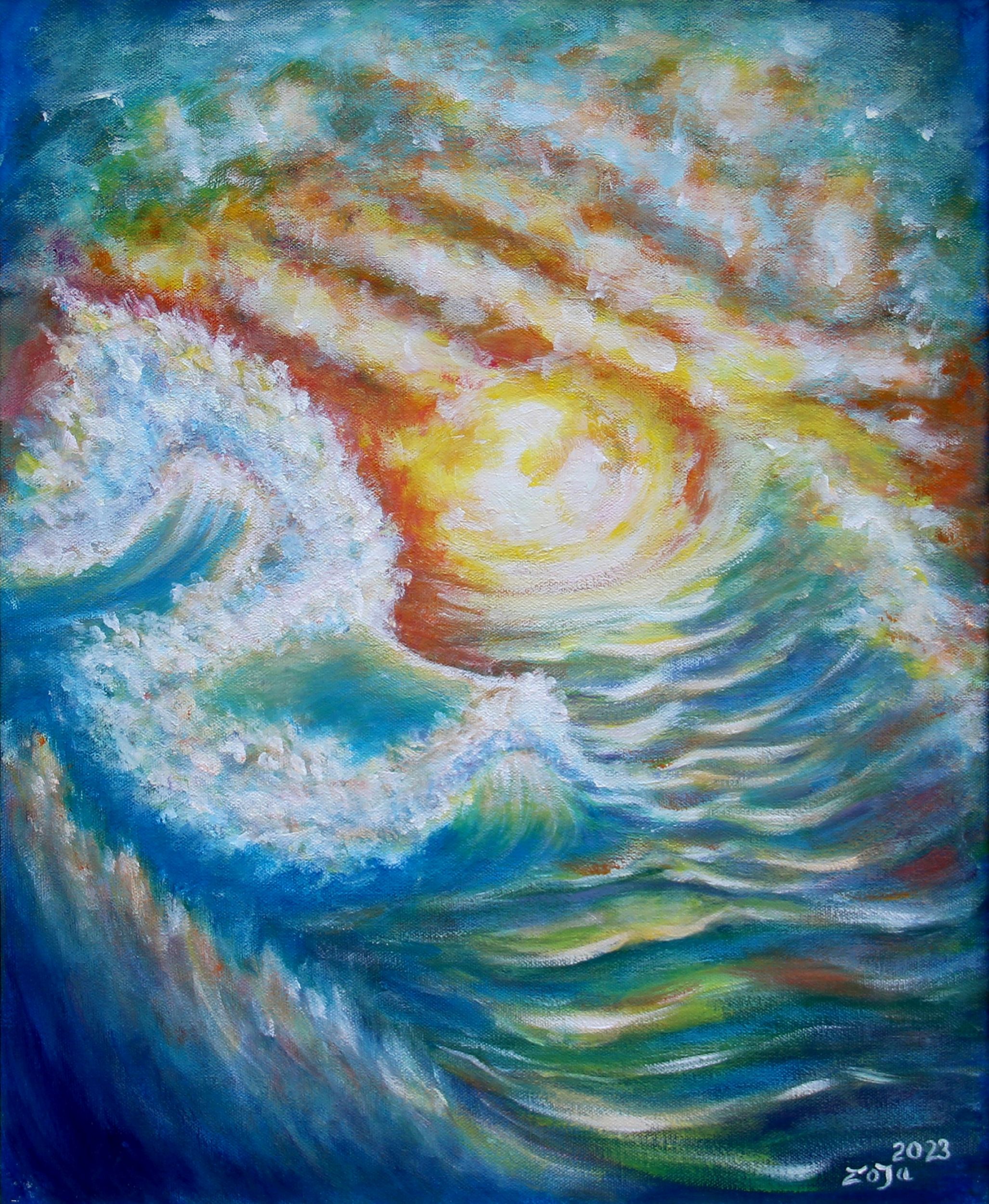 2023 Data, firma '2023, Zoja' (in basso a destra) Scritta, titolo, tecnica, luogo, data, scritta 'Original painting, Zoja Sperstad, Mare, 40x50, acrylic, canvas, Roma 2023, art critic: Ermanno Di Sandro' (al retro)