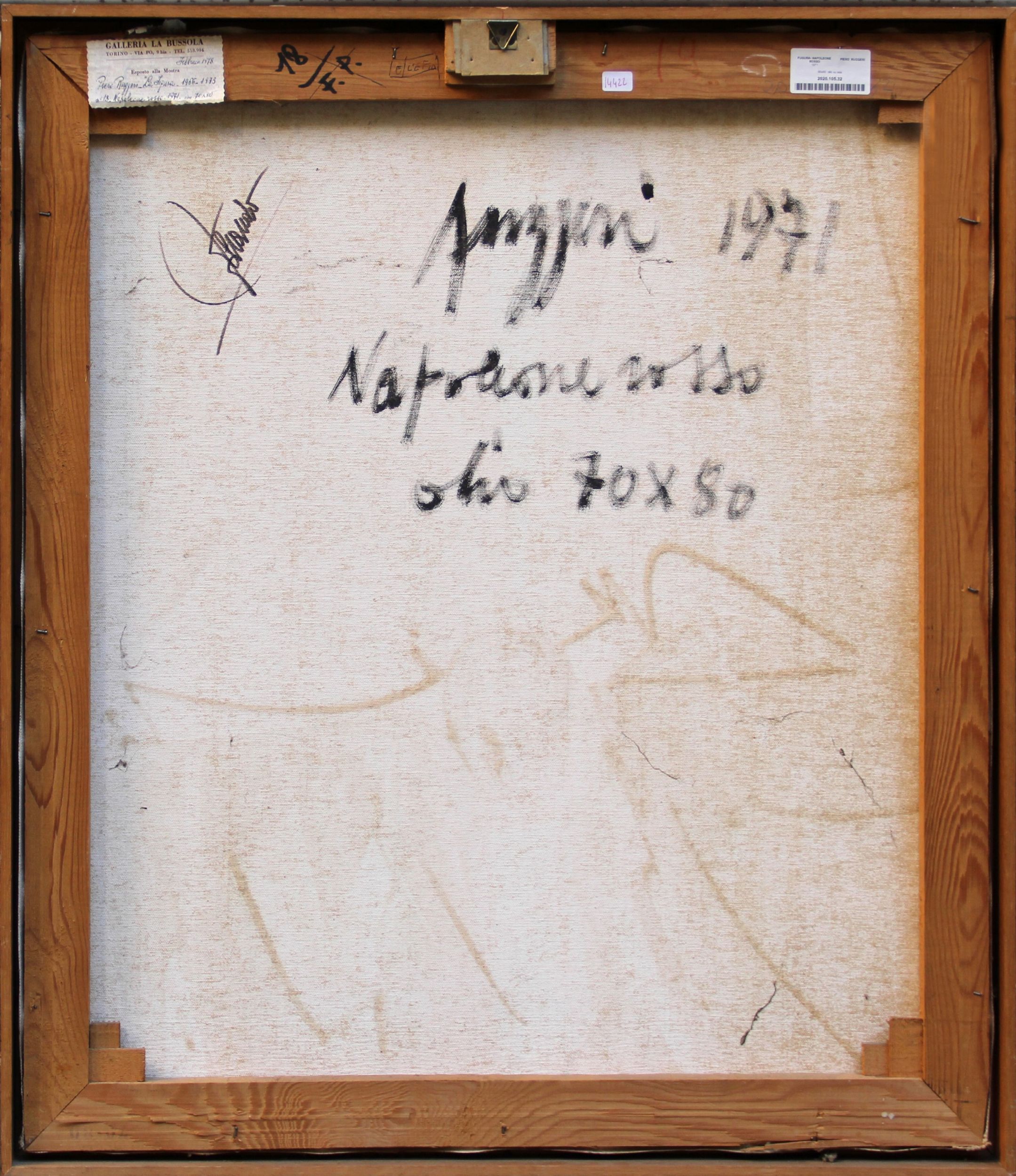 1971 Firma 'Ruggeri' (in basso a destra) Firma, data, titolo, tecnica, dimensioni 'Ruggeri, 1971, Napoleone rosso, olio, 70x80'; etichetta di Galleria la Bussola, Torino (al retro)