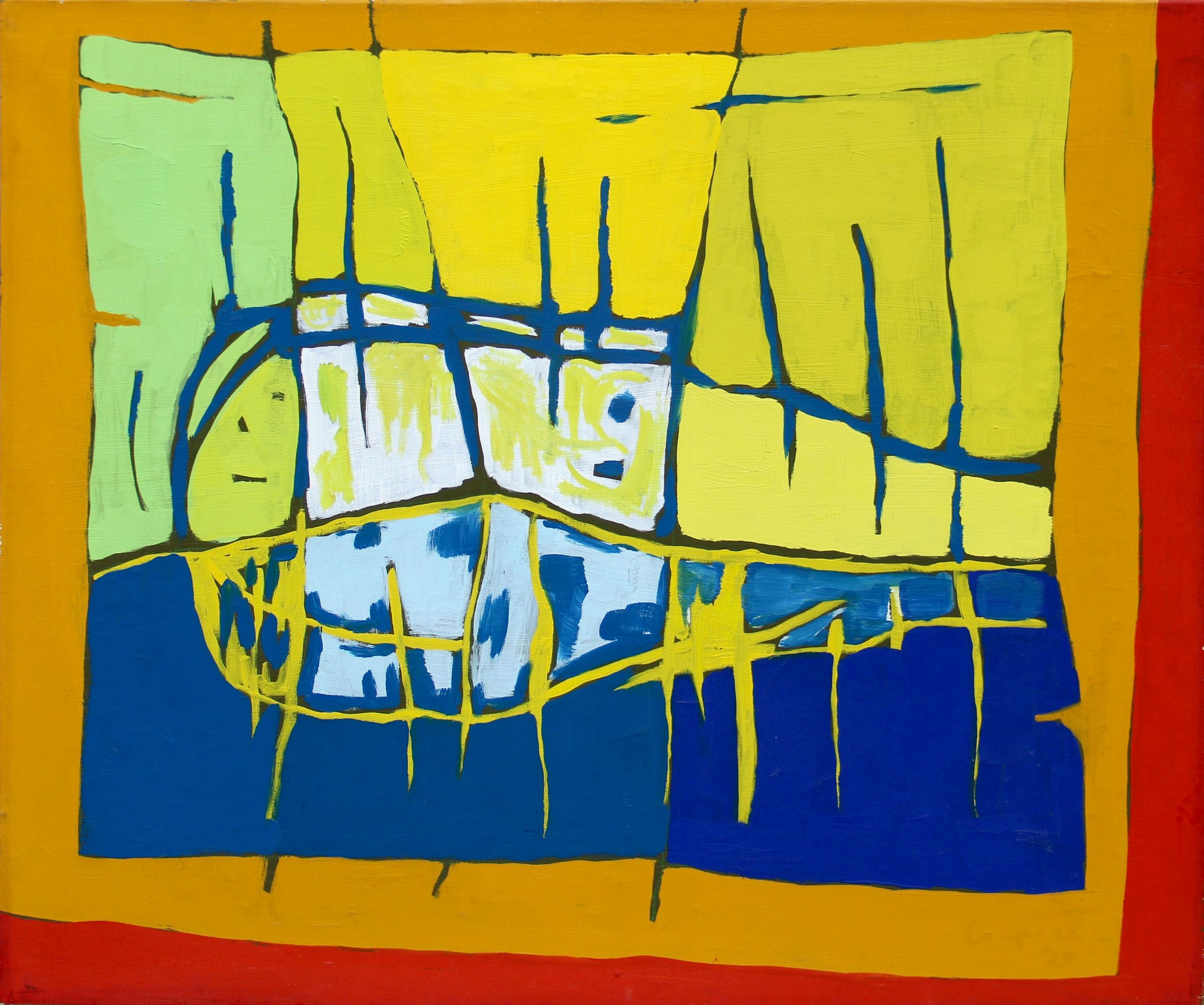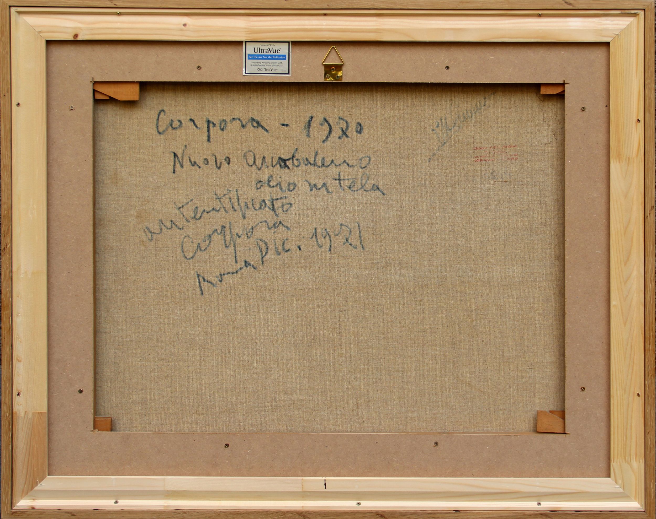 1970 Firma, data, titolo, tecnica, scritta, data 'Corpora, 1970, Nuovo arcobaleno, olio su tela, autenticato Corpora Roma, Dic. 1971'; timbro di Galleria d'arte moderna Il Vertice, Milano (al retro)