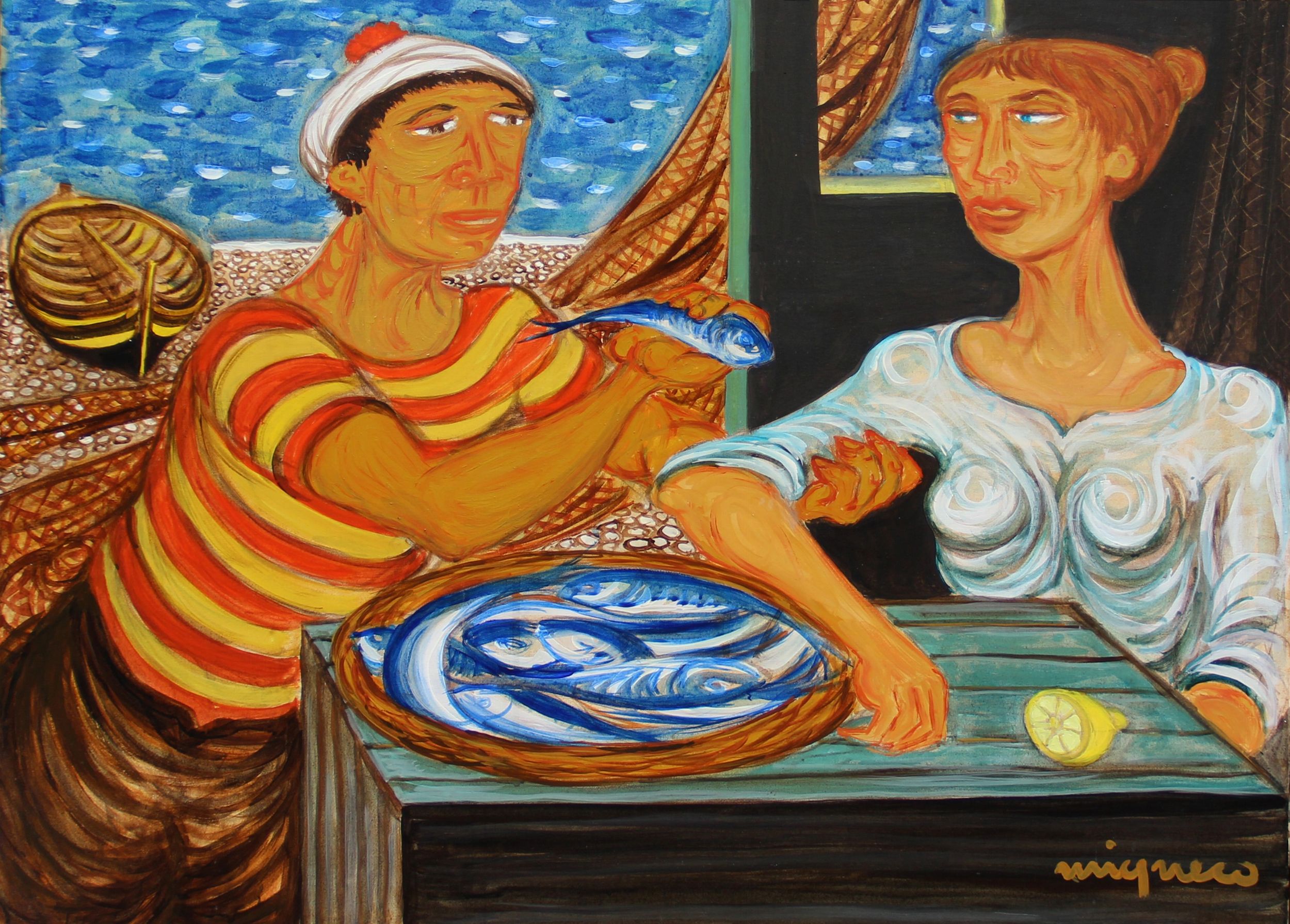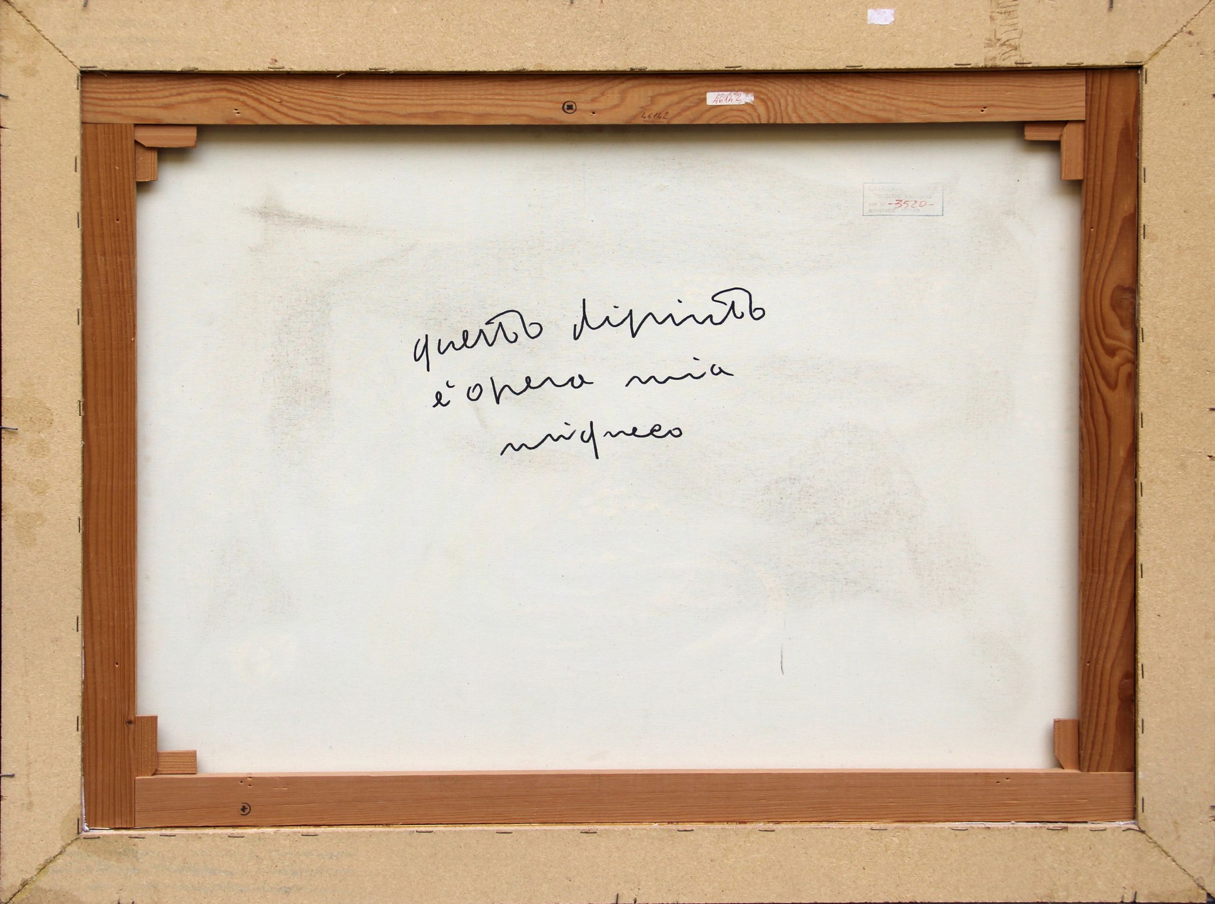 1989 Firma 'Migneco' (in basso a destra) Dichiarazione di autenticità, firma  'Questo dipinto è opera mia, Migneco';  timbro di Catalogo Generale Giuseppe Migneco, con n. 3520 (al retro)