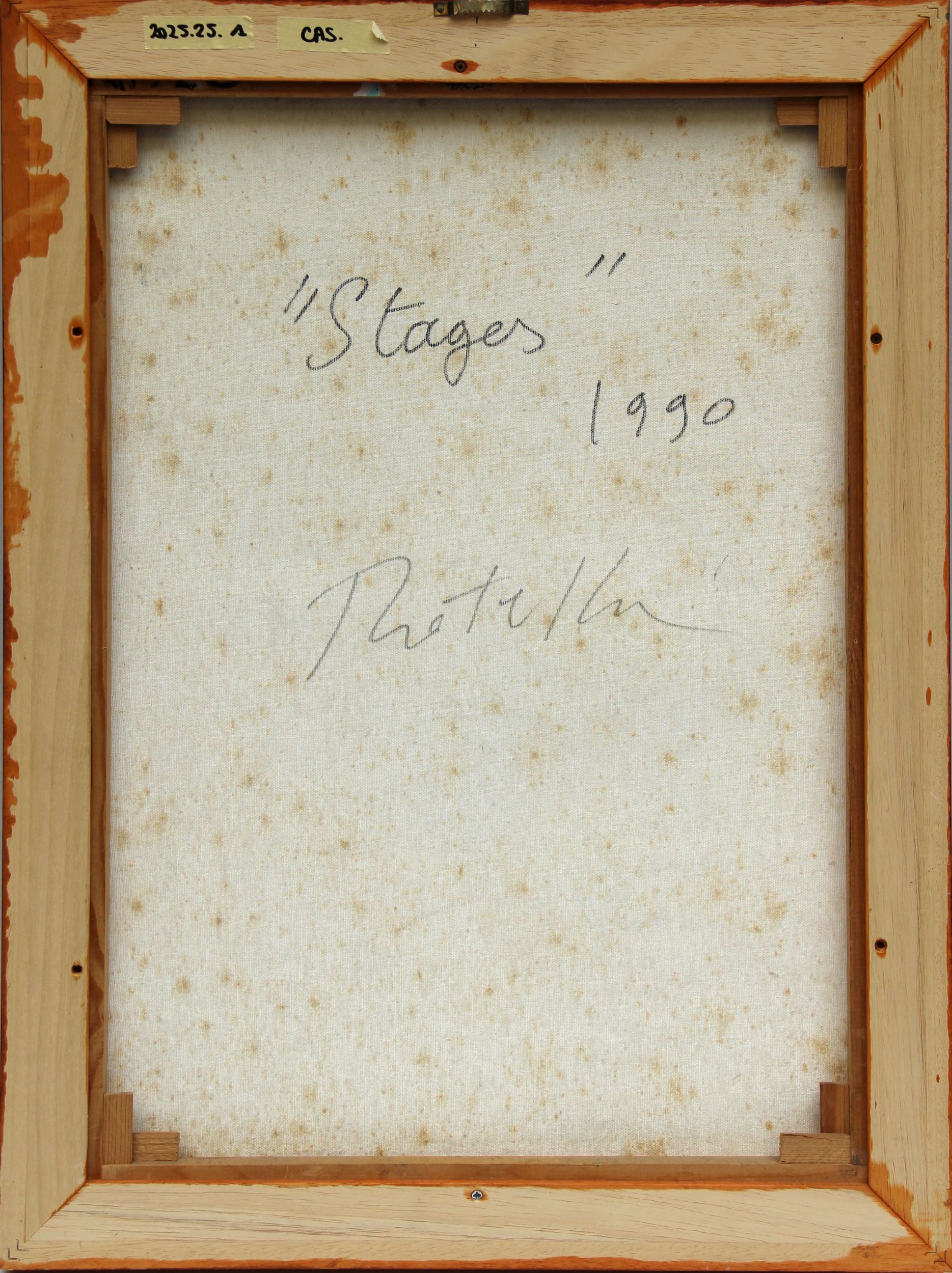 1990 Firma, data 'Rotella, 90' (in basso a sinistra) Titolo, data, firma 'Stages, 1990, Rotella' (al retro)