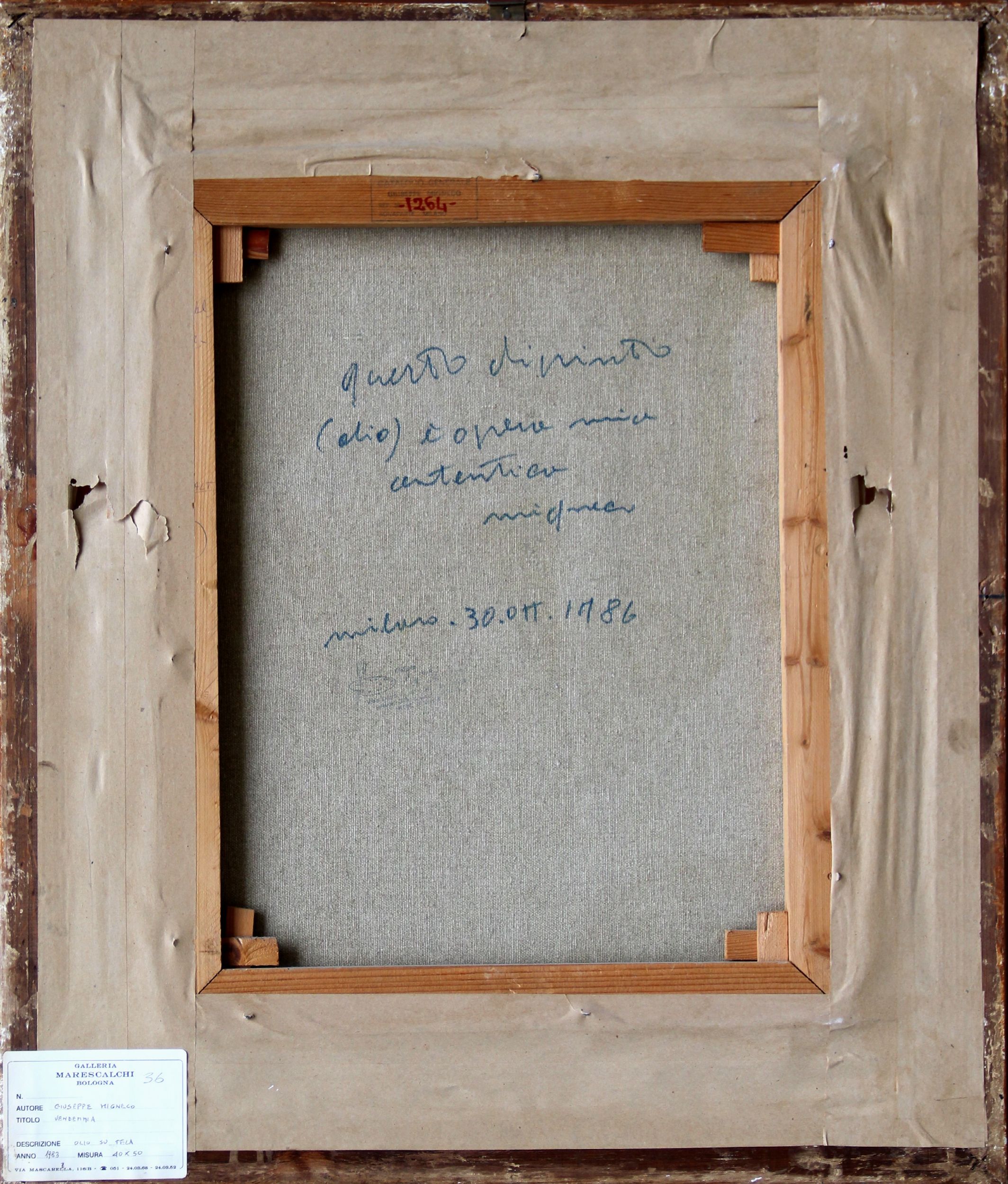 olio su tela, cm 50x40 1983 Firma 'Migneco' (in basso a destra) Dichiarazione di autenticità, firma 'Questo dipinto (olio) è opera mia autentica, Migneco'; timbro di Catalogo Generale Giuseppe Migneco, con n. 1264; timbro di Galleria La Tavolozza, Riccione; etichetta di Galleria Marescalchi, Bologna (al retro)