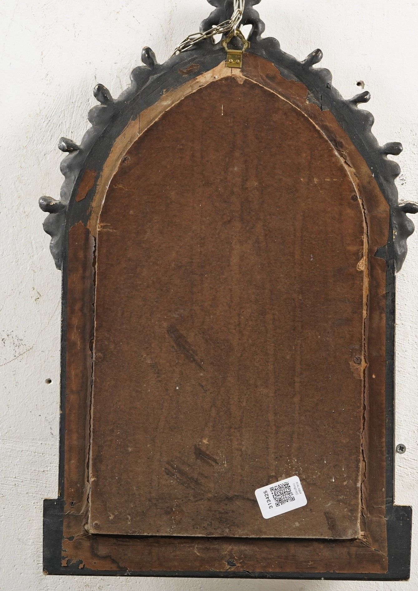 Crocifisso in metallo argentato entro teca neogotica. XX secolo