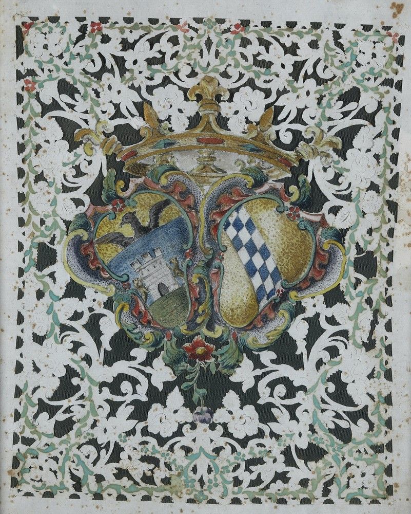 Doppio stemma nobiliare policromo. XIX-XX secolo