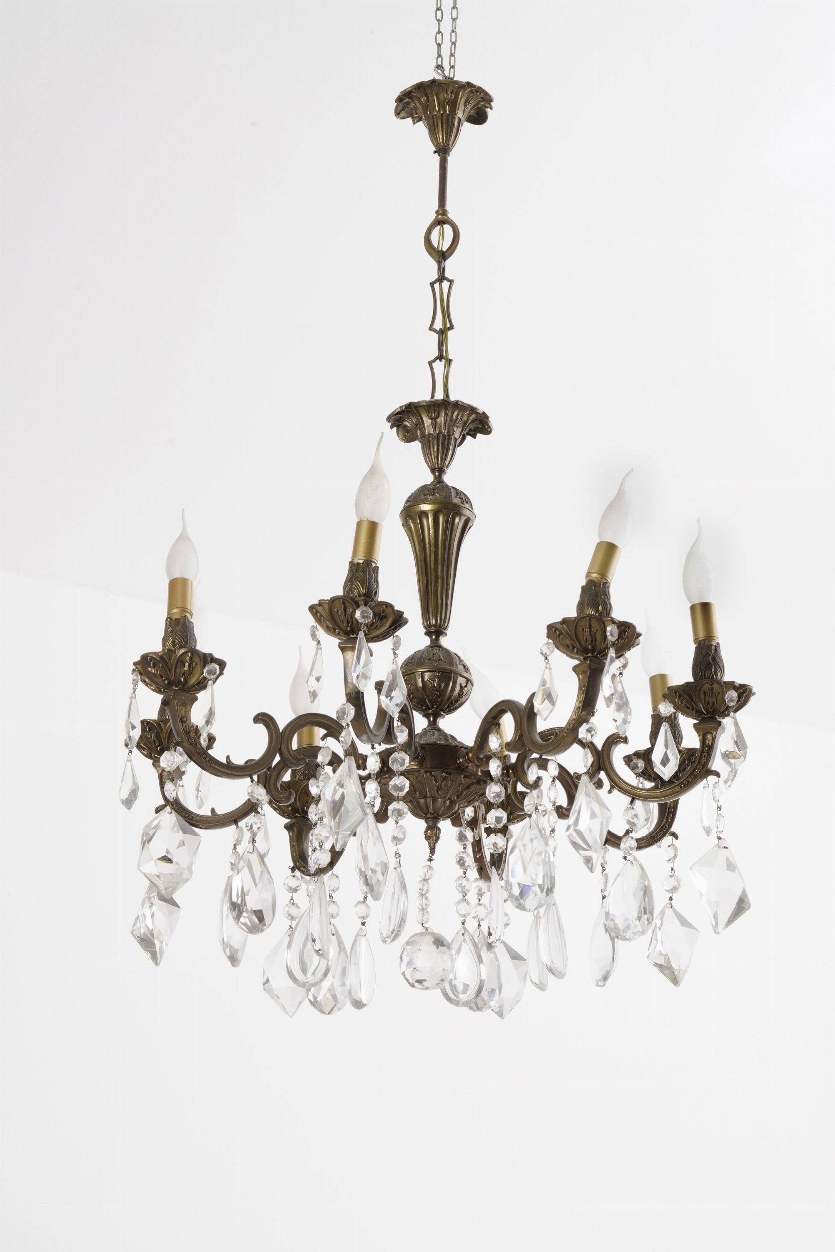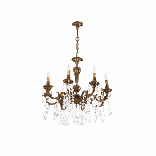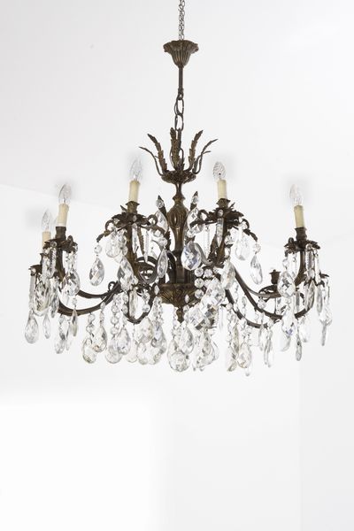 Lampadario a 12 luci in ottone e cristalli