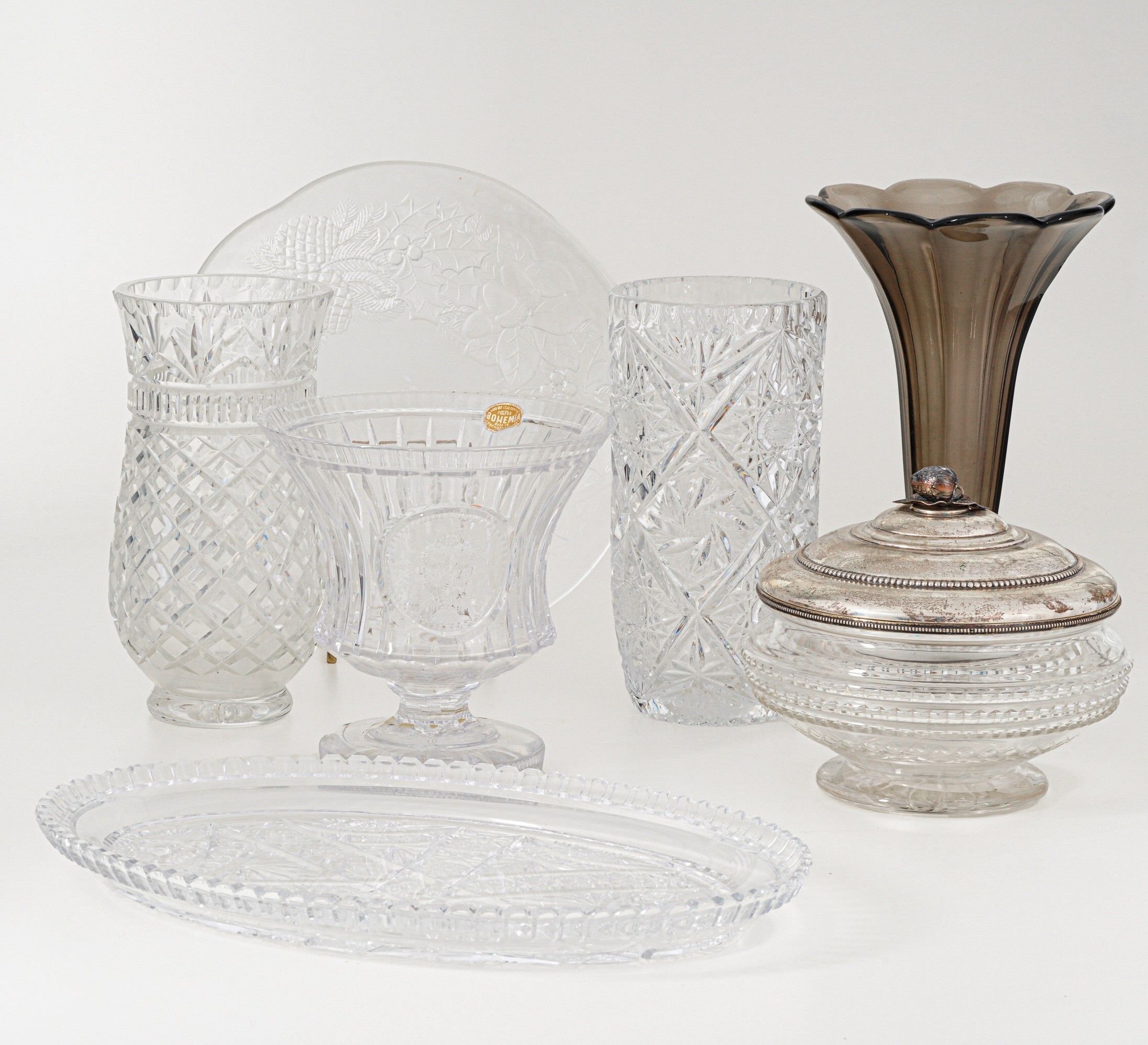 Lotto misto di vasi e oggetti in vetro