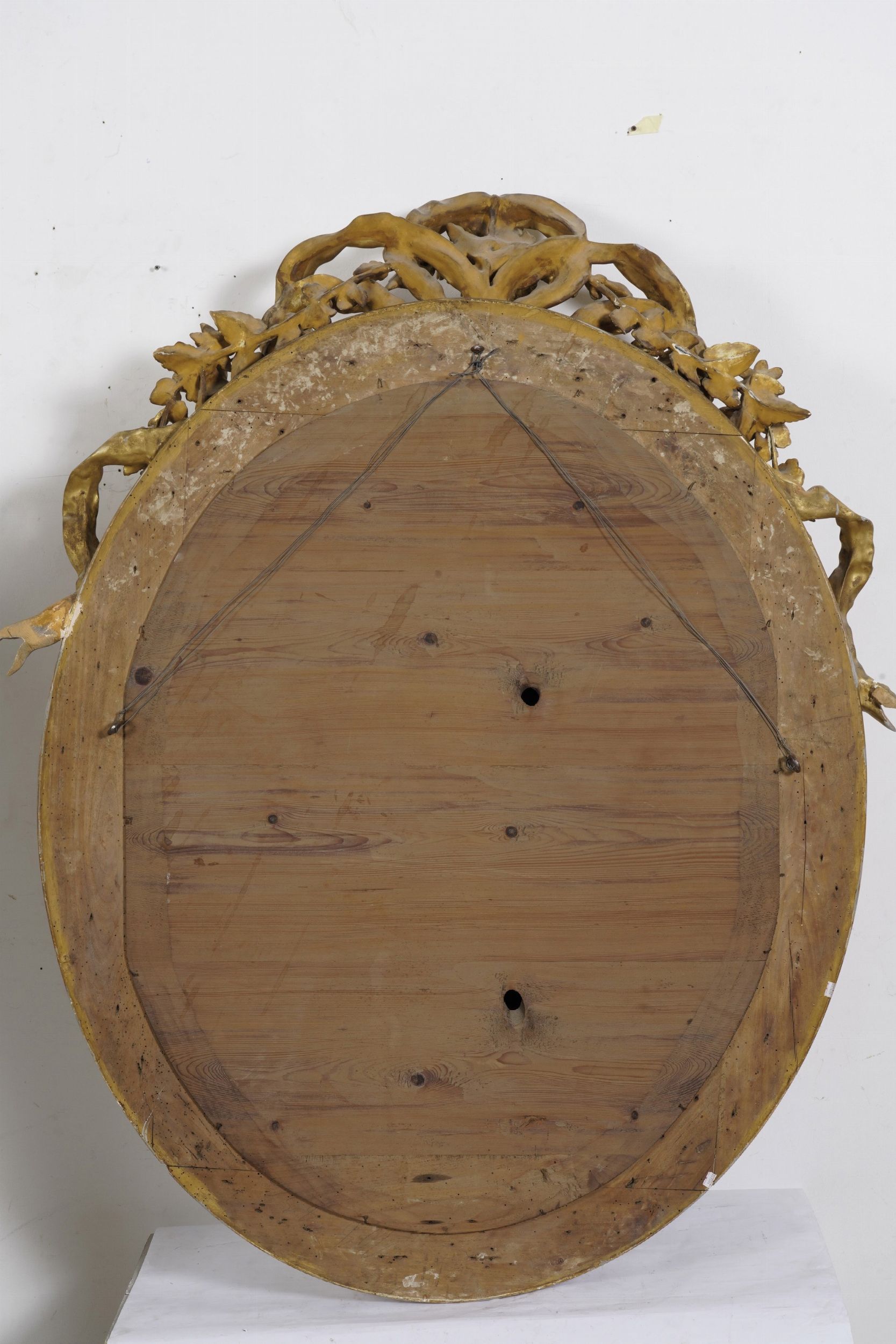 Specchiera ovale dorata in legno intagliato e pastiglia. XIX-XX secolo