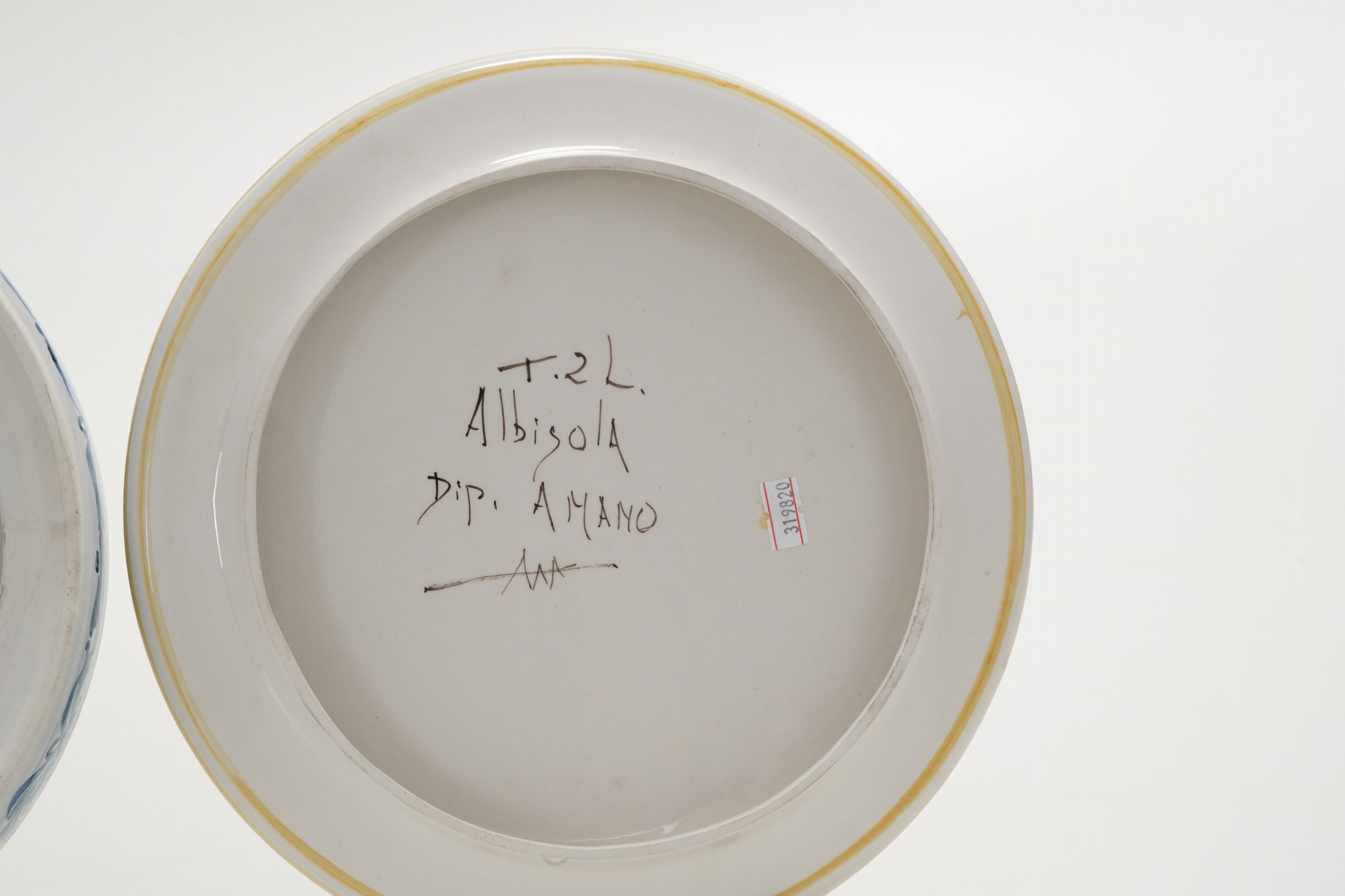 Un tagliere bianco e blu albisola e alzatina albisola