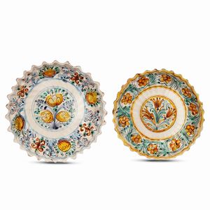 DUE PIATTI DA PORTATA E DUE PIATTI, NAPOLI, REAL FABBRICA FERDINANDEA, 1790-1800 in porcellana, orlo sagomato [..]