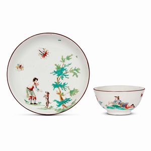 COPPIA DI TAZZINE, MANIFATTURA DI MEISSEN, 1740 in porcellana dipinta in policromia, forma di ispirazione orientale [..]