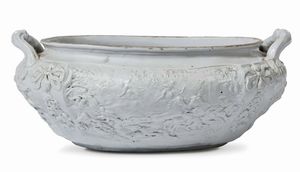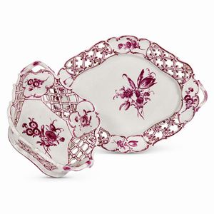 COPPIA DI VASSOI, DOCCIA, MANIFATTURA GINORI, 1780-1790 in porcellana leggermente azzurrata dipinta in policromia [..]