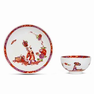 TAZZINA CON PIATTINO, MANIFATTURA DI MEISSEN, 1730-1735 in porcellana dipinta in policromia, tazza a coppa emisferica [..]