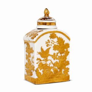 PORTA-THE, MANIFATTURA DI MEISSEN, 1774-1813 in porcellana dipinta in blu coperto di oro, corpo di forma quadrangolare [..]