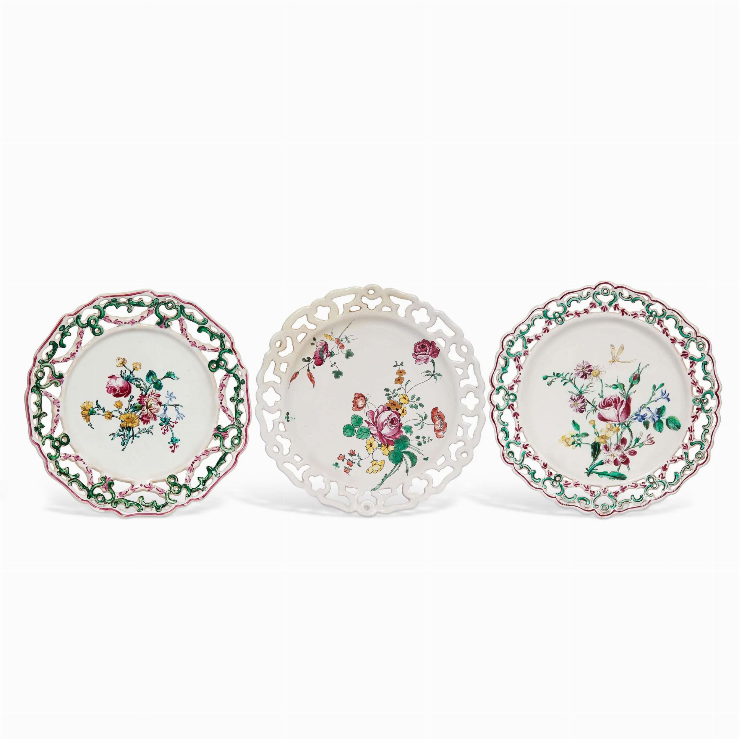 in maiolica dipinta in policromia di forma circolare con bordo sagomato e traforato, dipinti a piccolo fuoco con fiori naturalistici e insetti. Marca VP della manifattura sul retro; diam. cm 25.