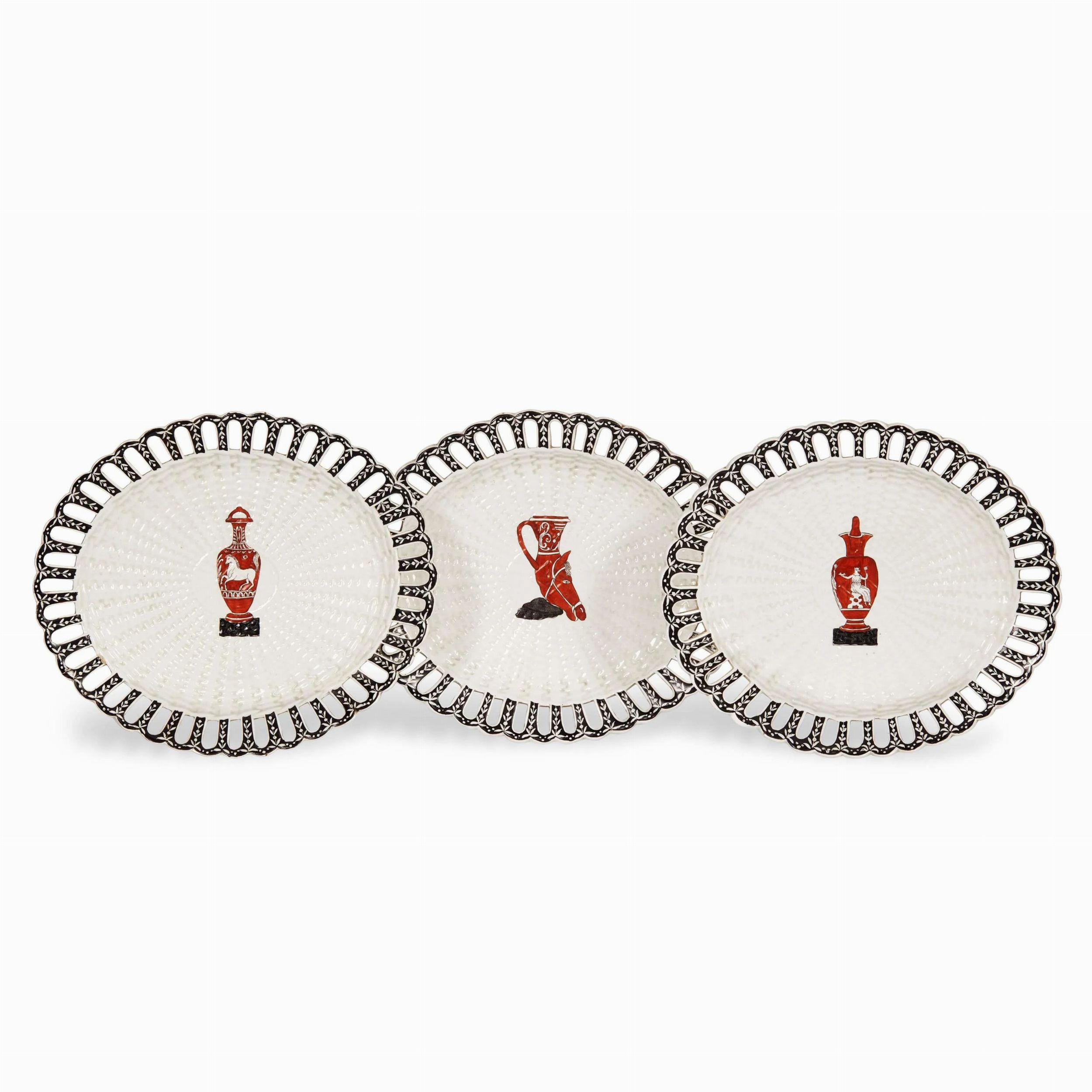 TRE VASSOI, NAPOLI, MANIFATTURA FERDINANDO DEL VECCHIO, 1820 CIRCA