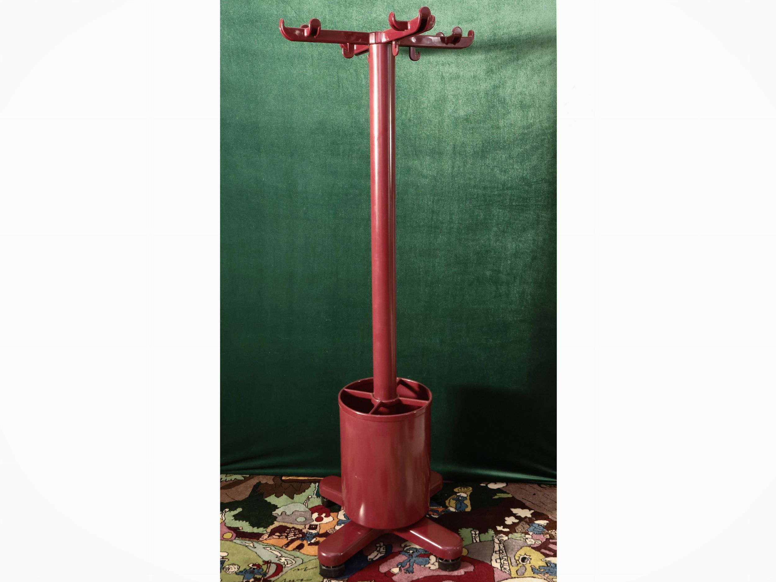 Anni Settanta realizzato in metallo laccato bordeaux, con vano portaombrelli