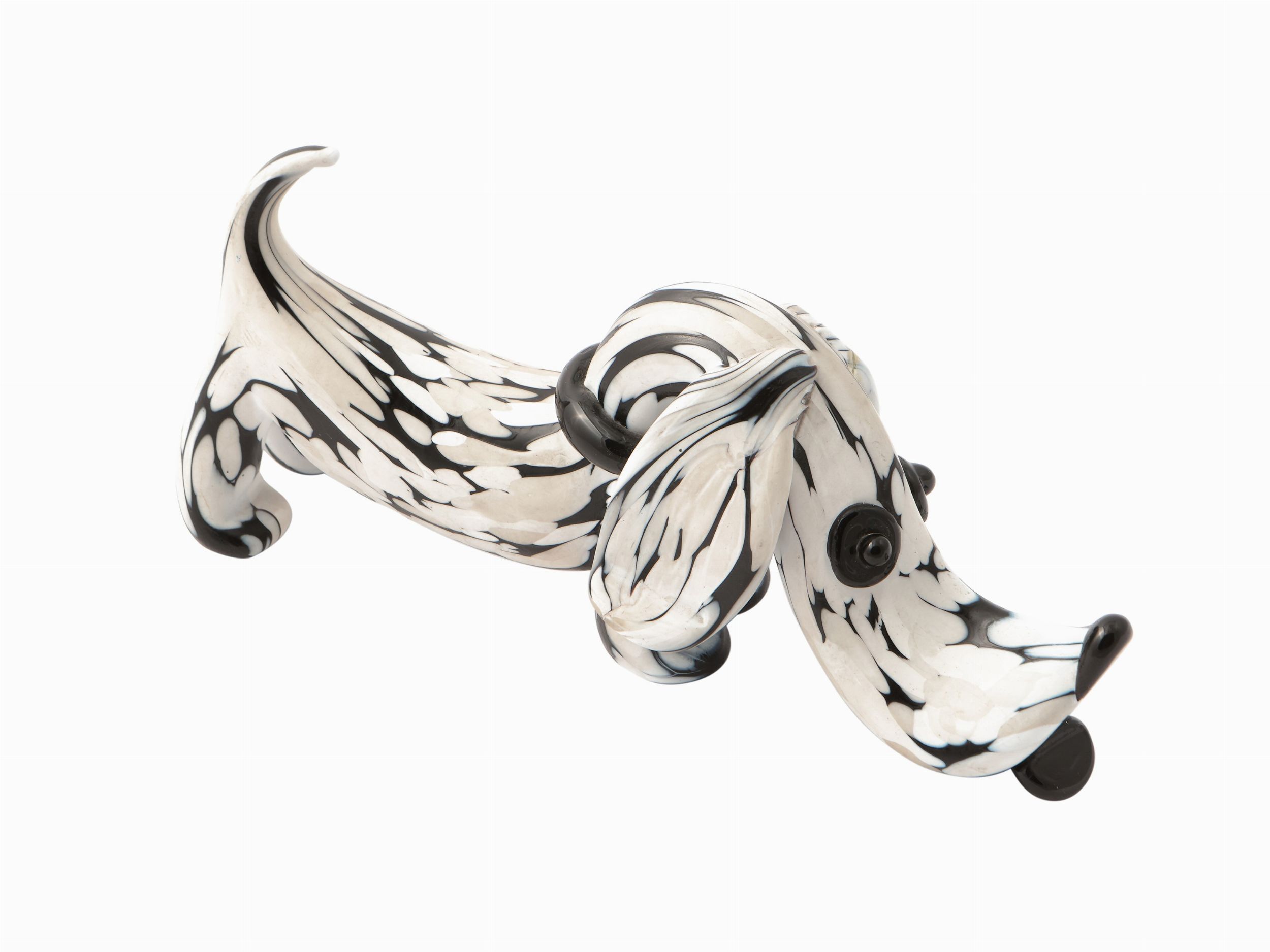 Murano, 1960 ca. in vetro lattimo a macchie nere applicazione a caldo di alcuni elementi.