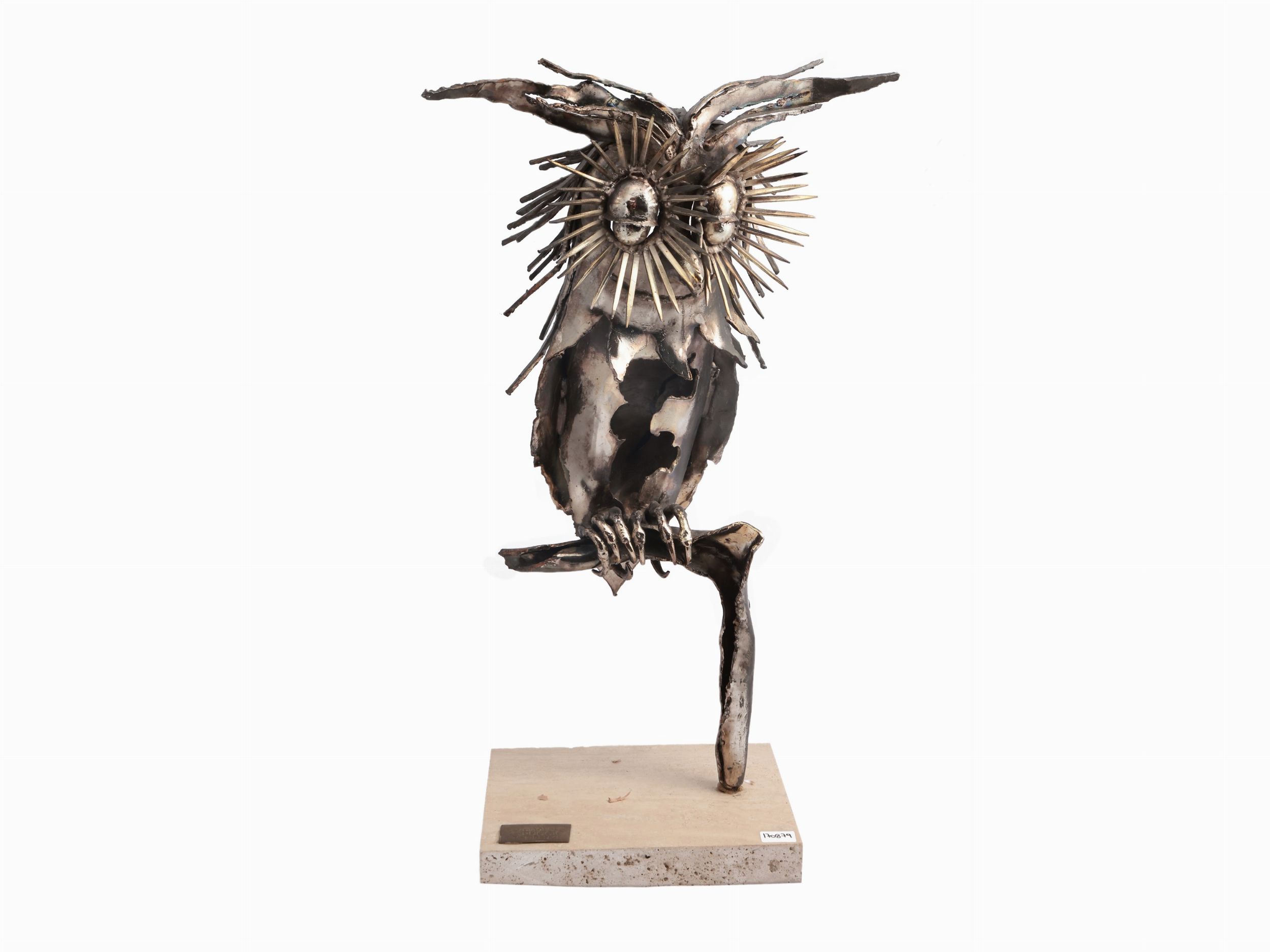 Anni Settanta scultura in metallo lucido, su base in marmo
