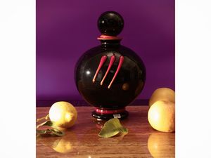 da h cm 8 a cm 15 (4) tra cui una ampolla di forma globulare in vetro policromo, una piccola mela in vetro ambra [..]
