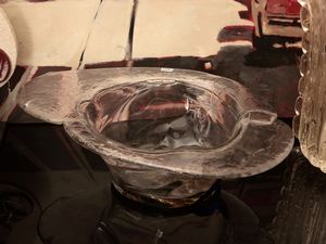 largh cm 13 Murano, 1950 ca. con bordo ondulato sui toni dell'ametista e oro.