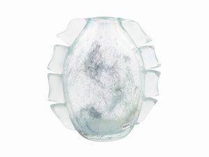h cm 29 Murano, 1950 ca. con inclusione di filamenti all'interno e creste laterali trasparenti applicate a cal [..]