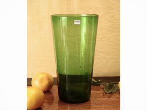 H cm 21 Murano, 1936 ca. in vetro pulegoso verde e manico applicato a caldo.