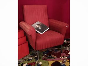 h cm 81x59x70 Anni Cinquanta imbottite e rivestite in tessuto con fantasia a quadretti nei toni del giallo e del [..]
