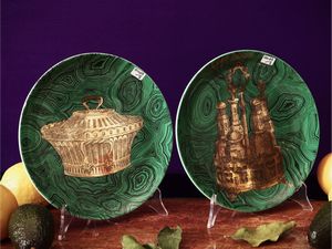 diam cm 26,5 Milano, Anni Cinquanta decorati ad imitazione della malachite e lumeggiati in oro, lievi difetti
