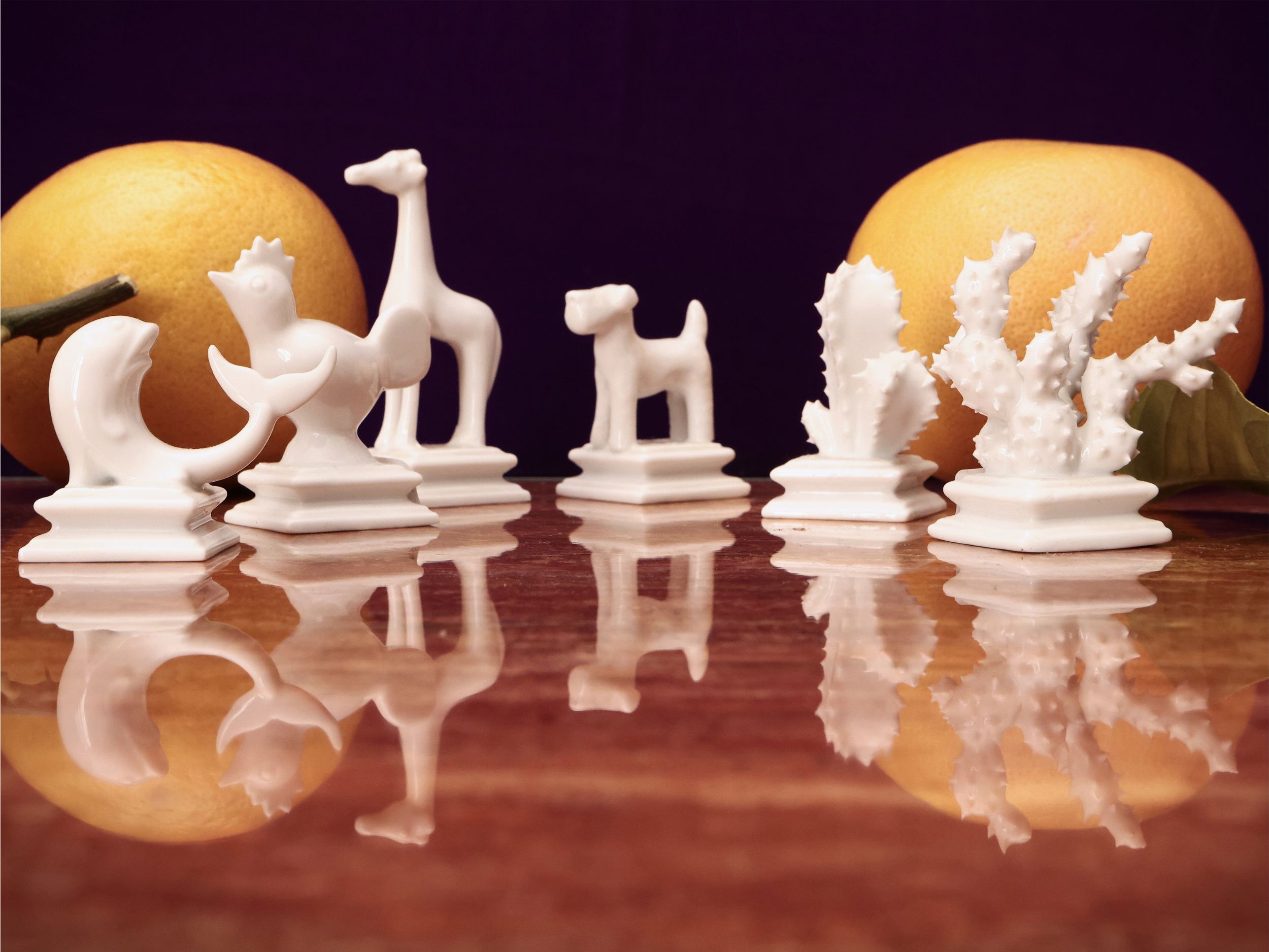 Serie di sei segnaposto in porcellana Ginori per Capodimonte