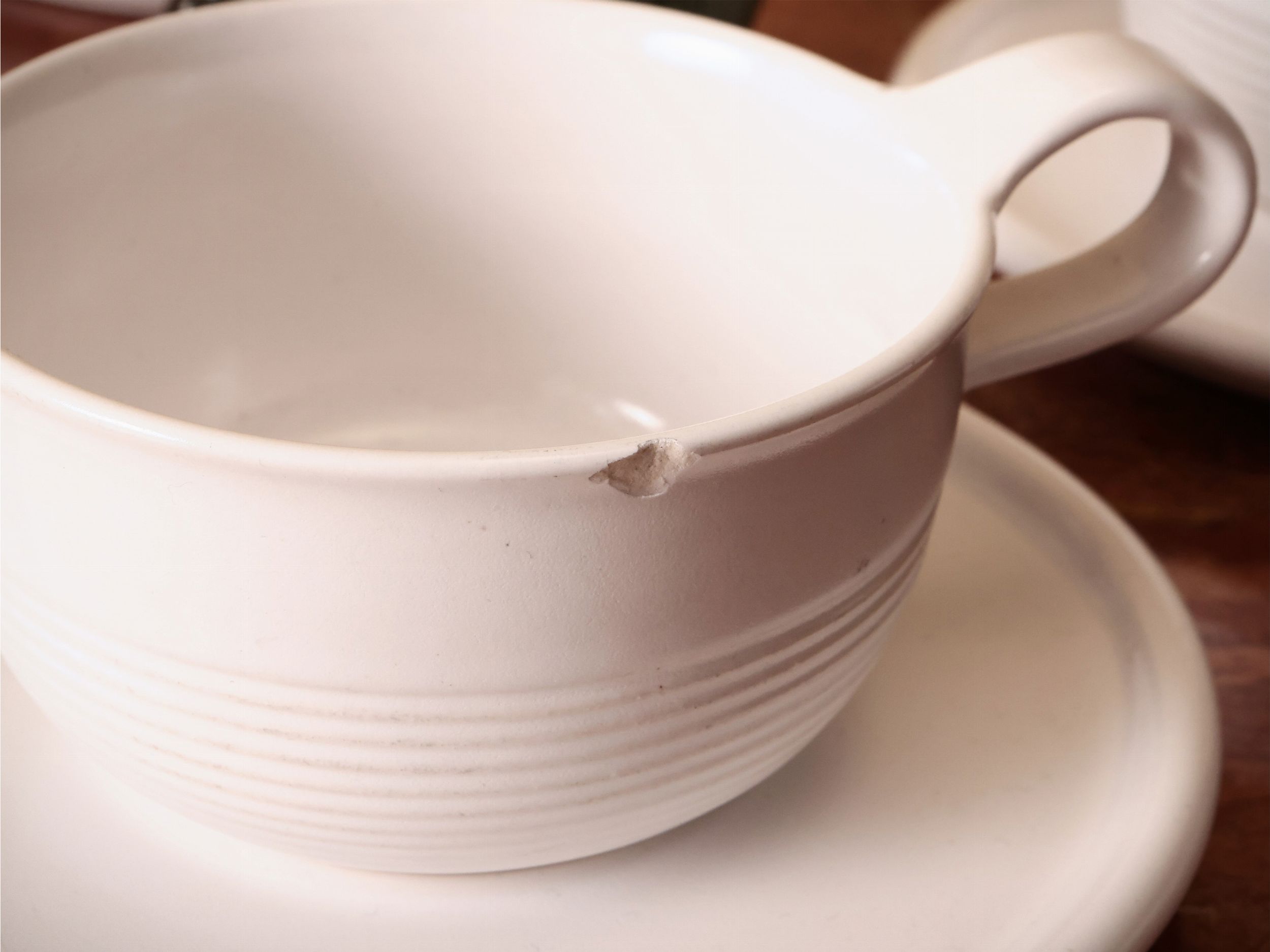 Pesaro, Anni Ottanta corpo scanalato, composto da teiera, zuccheriera e seria di cinque tazze con piattino, lievi difetti
