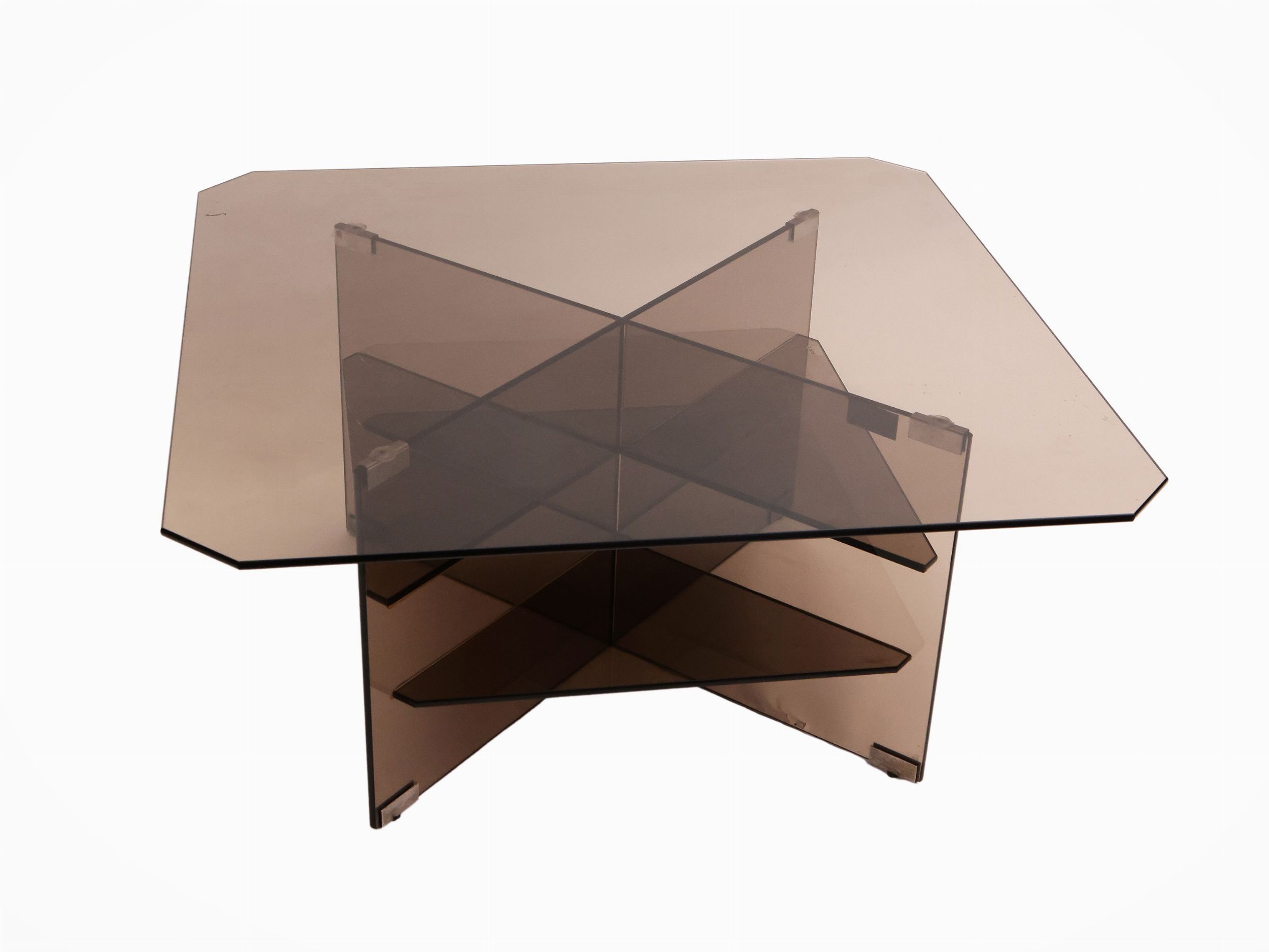 Anni Settanta realizzato in vetro fumé, piano con angoli scantonati